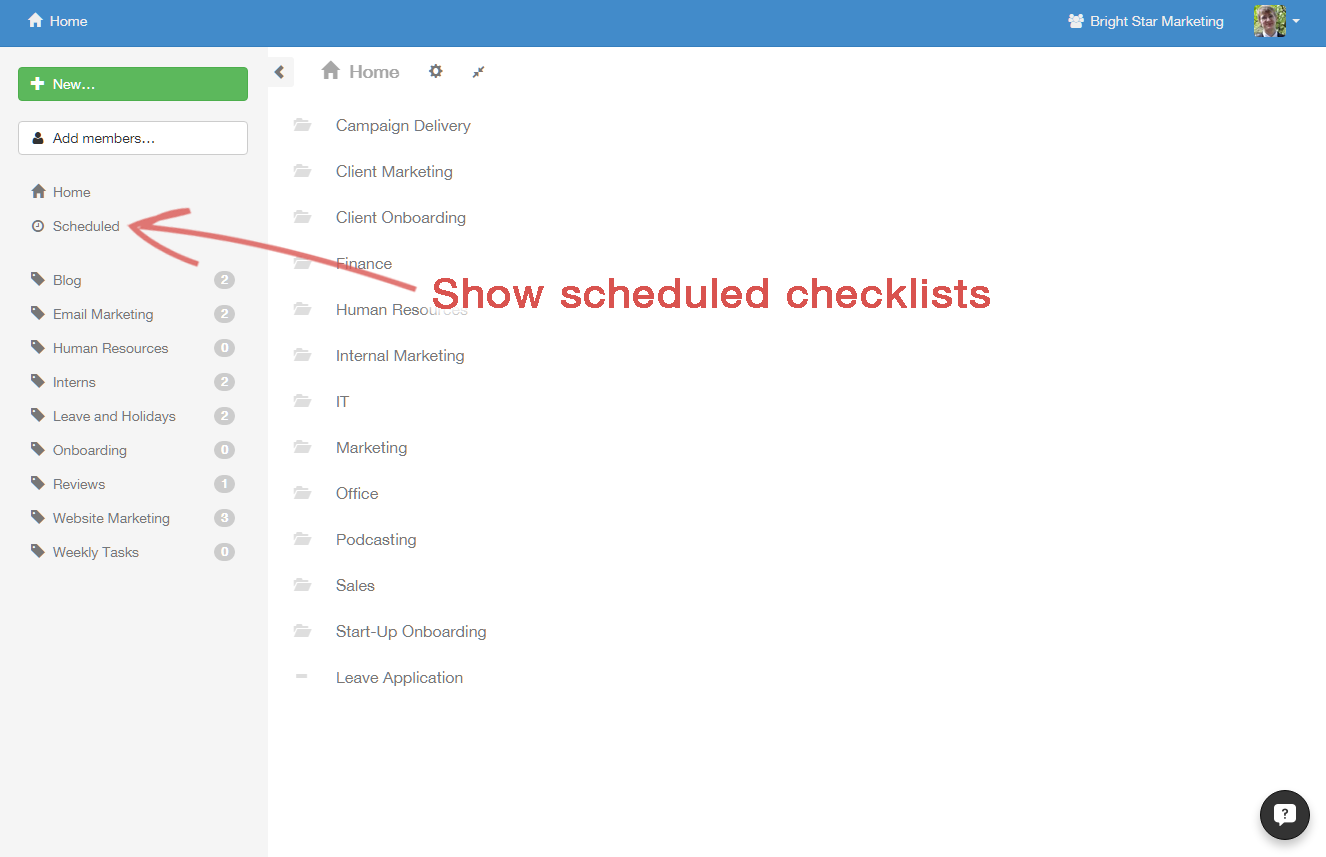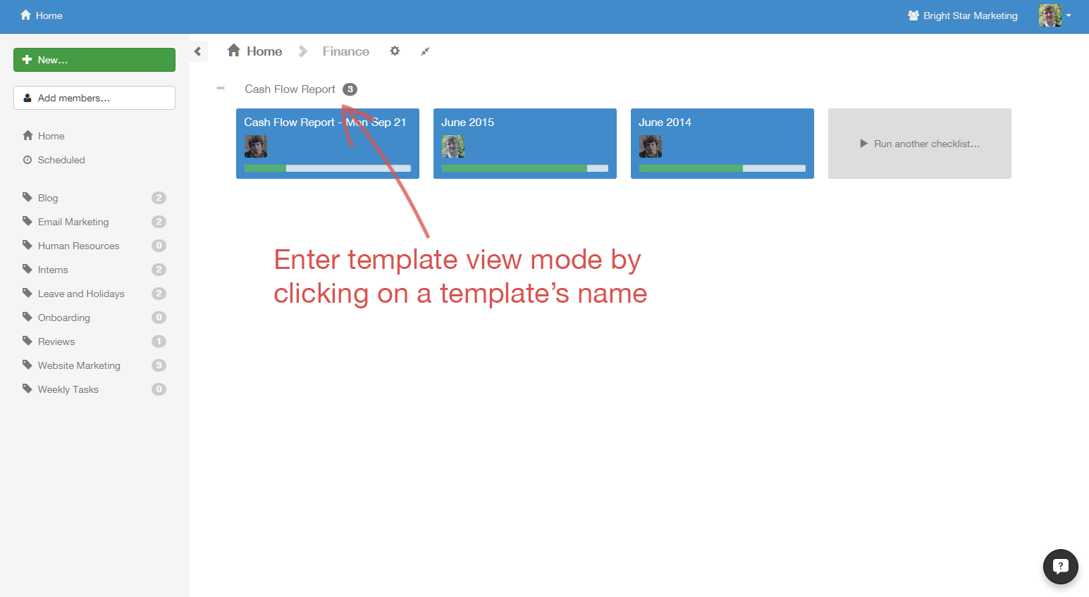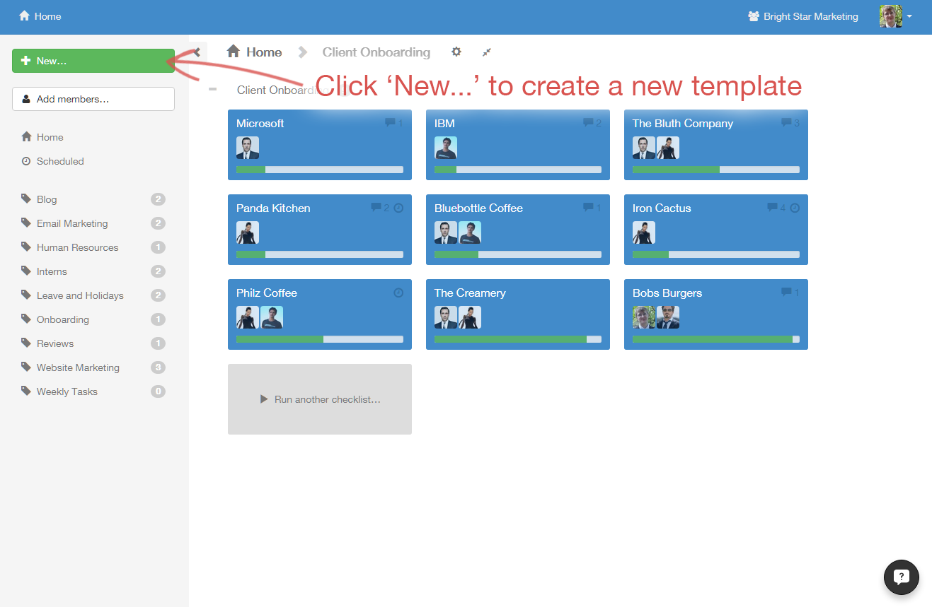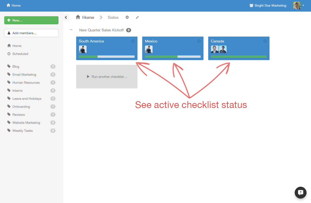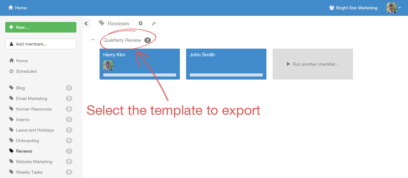First, click on the checklist you want to manage.