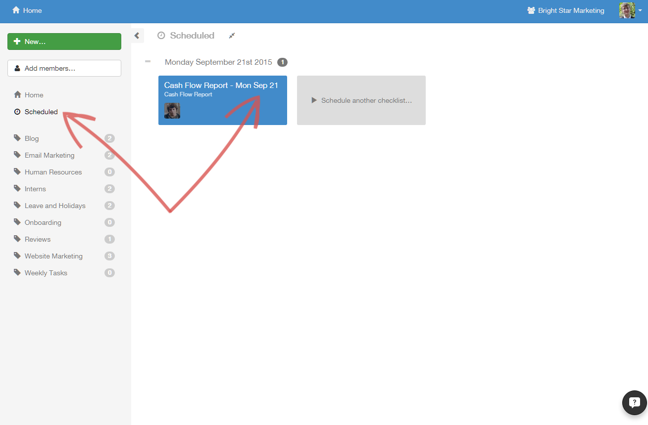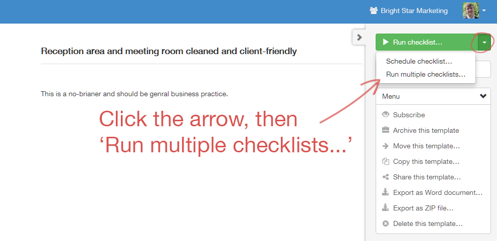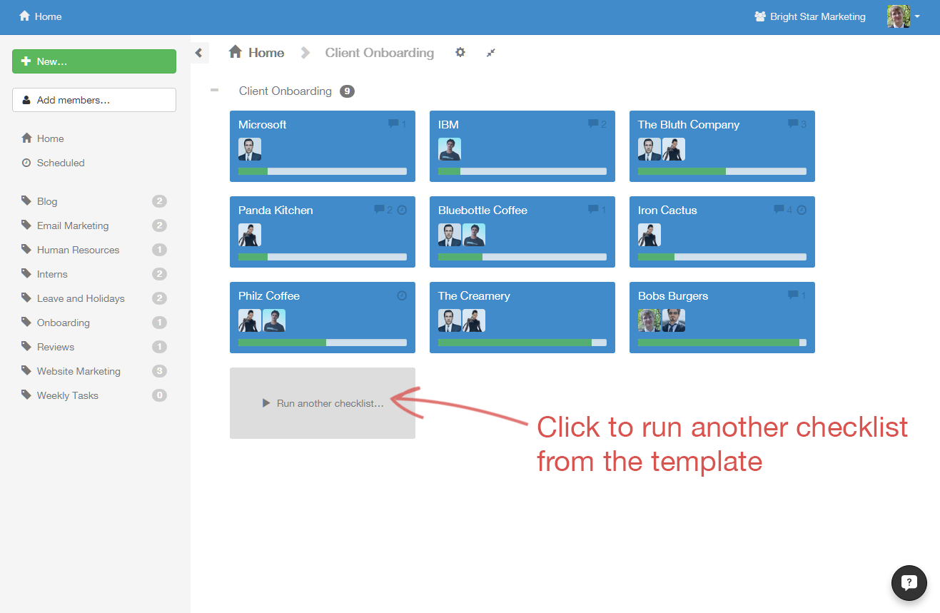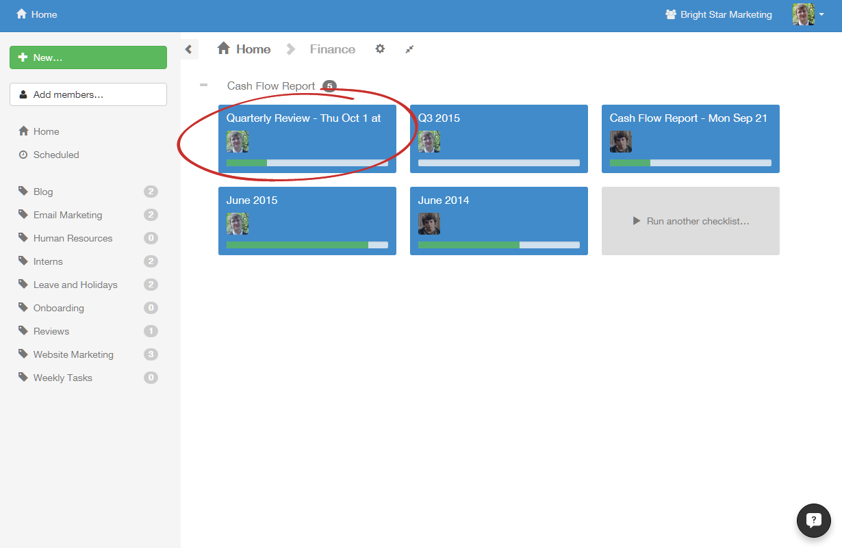 First, click on the checklist you want to manage.