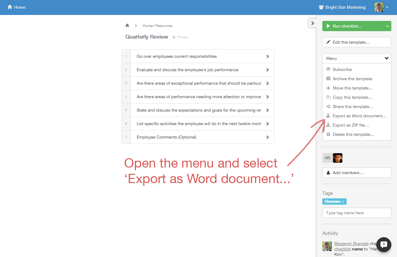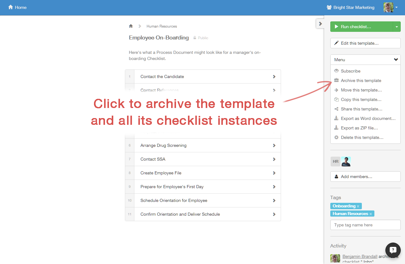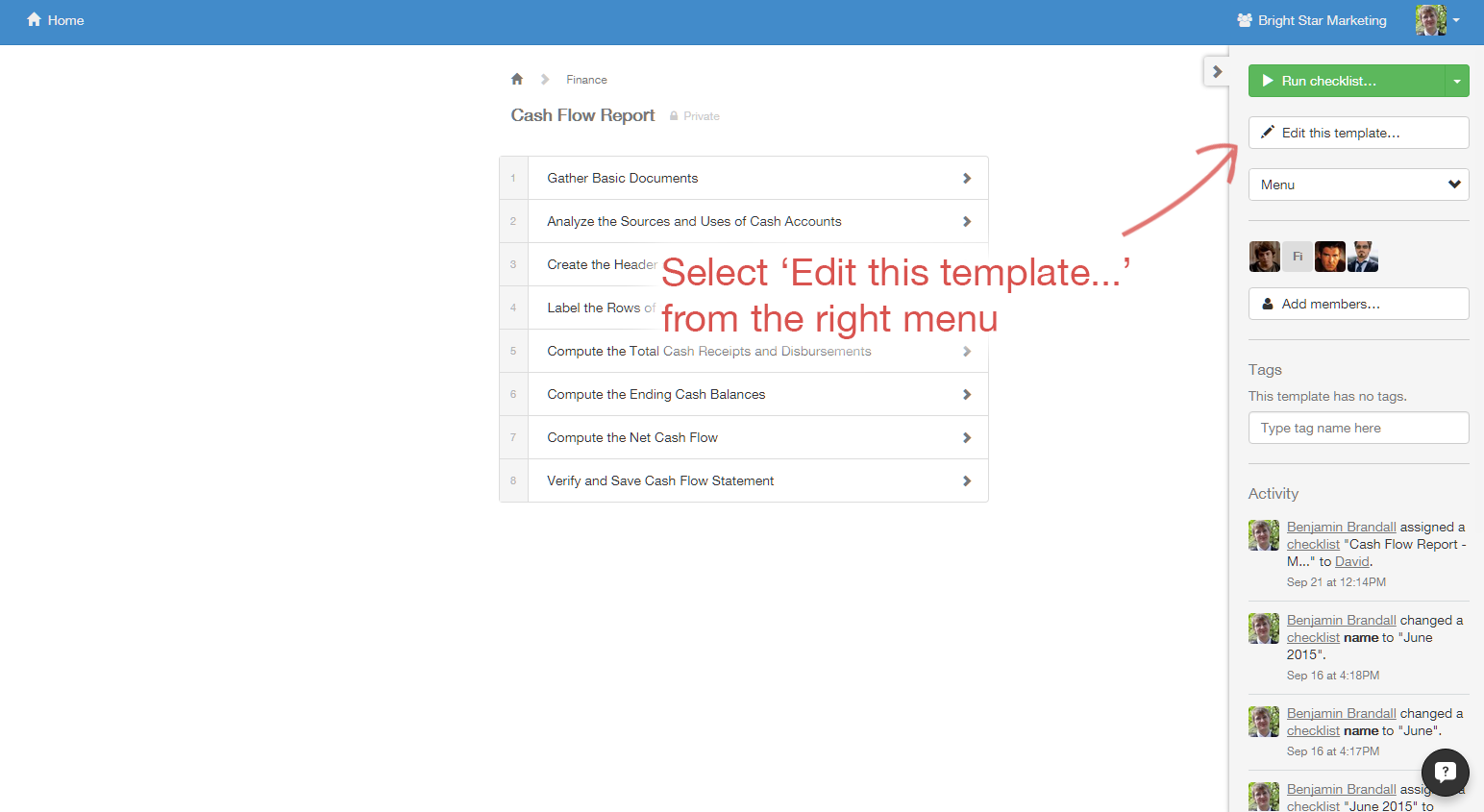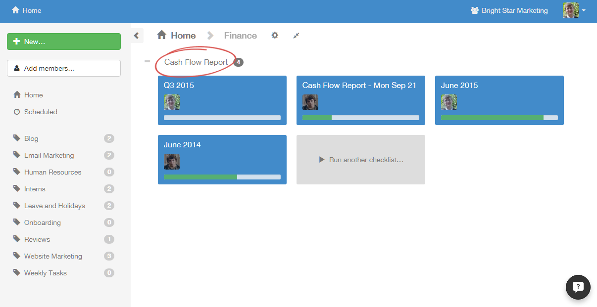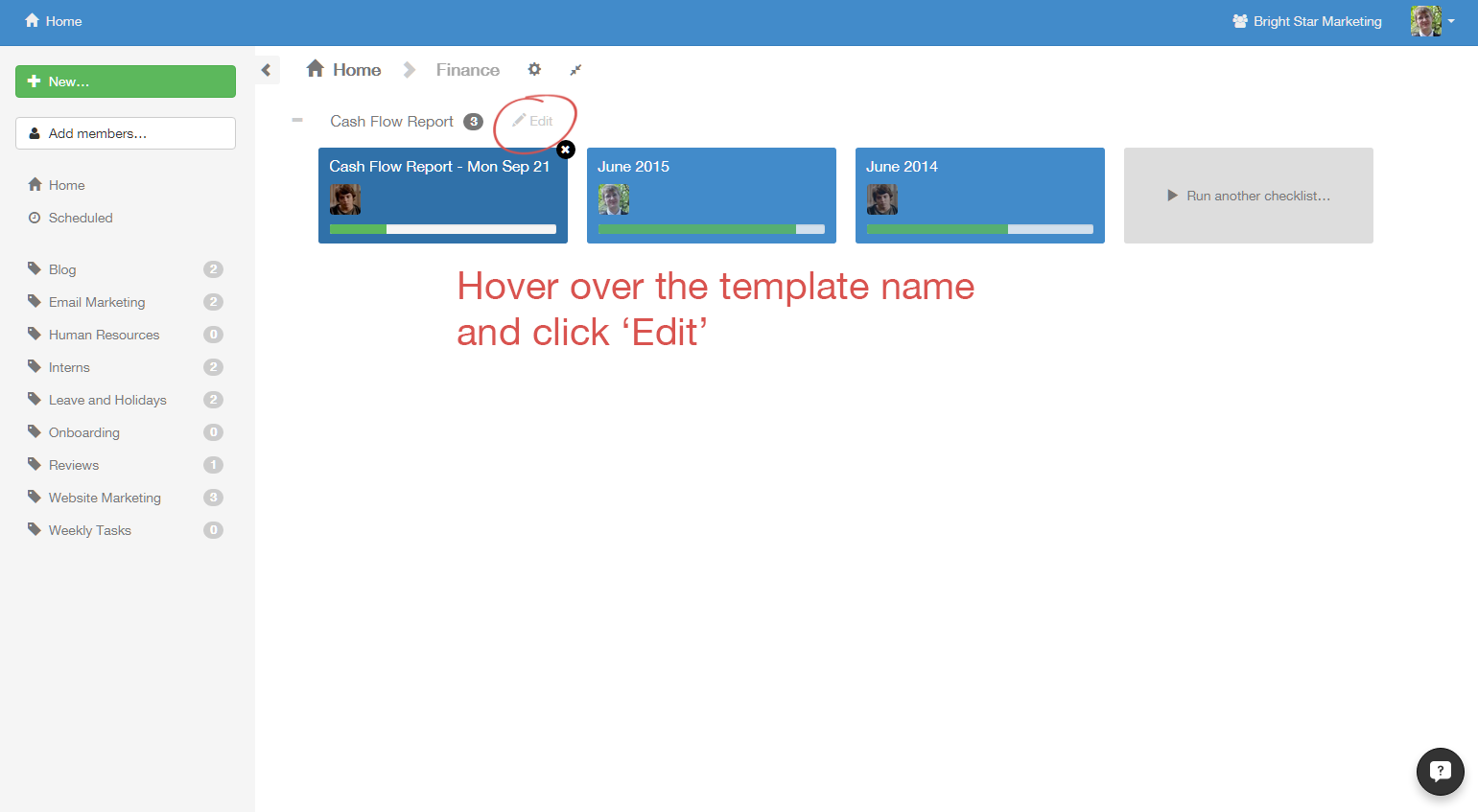 First, click on the checklist you want to manage.