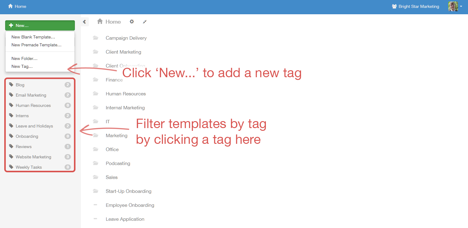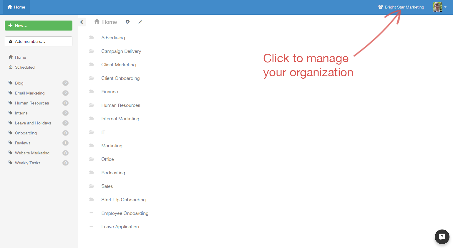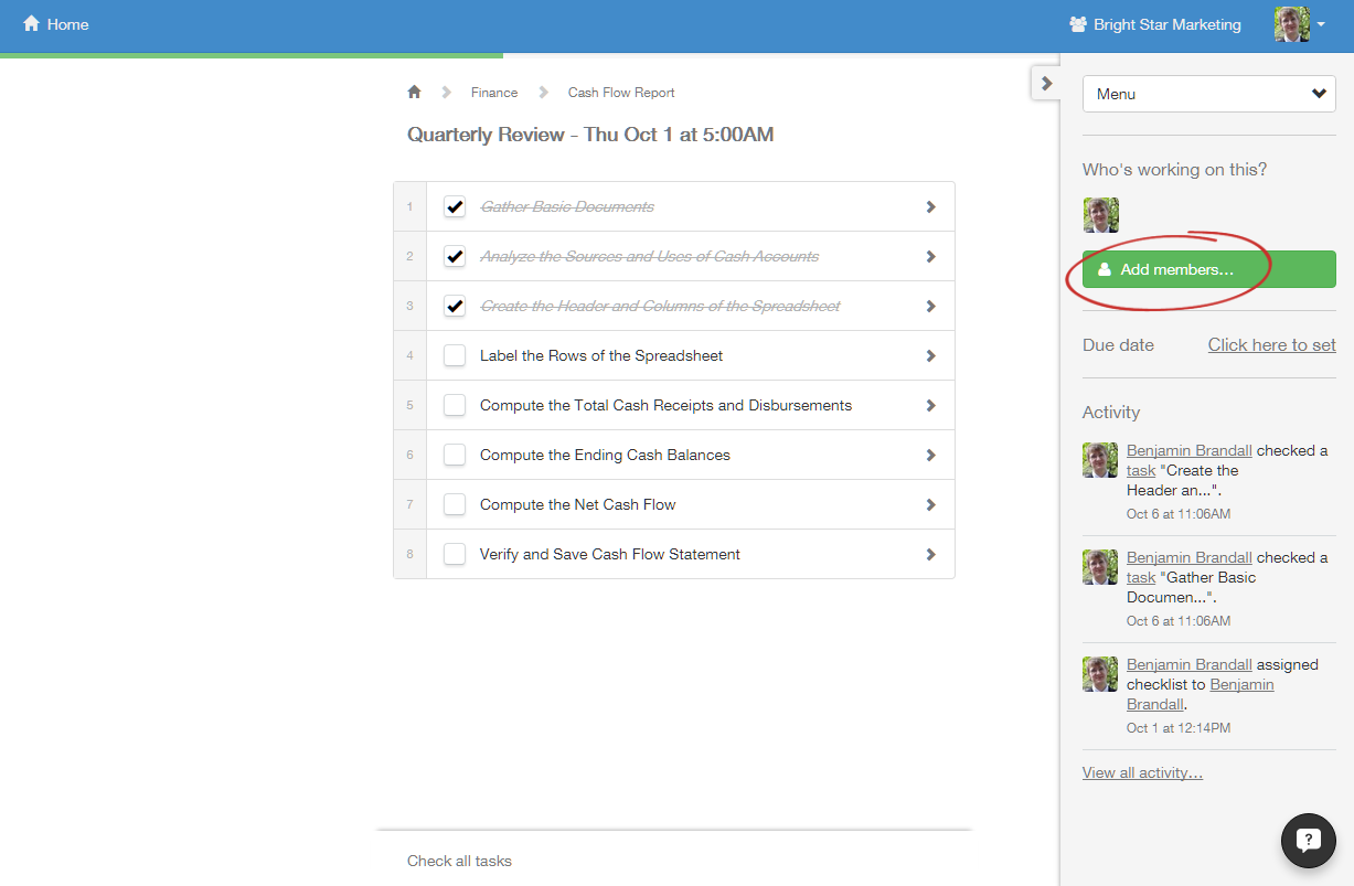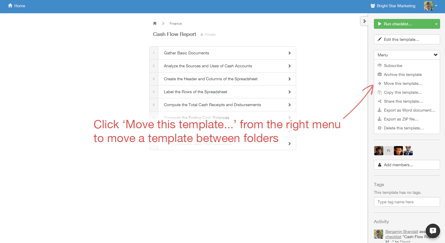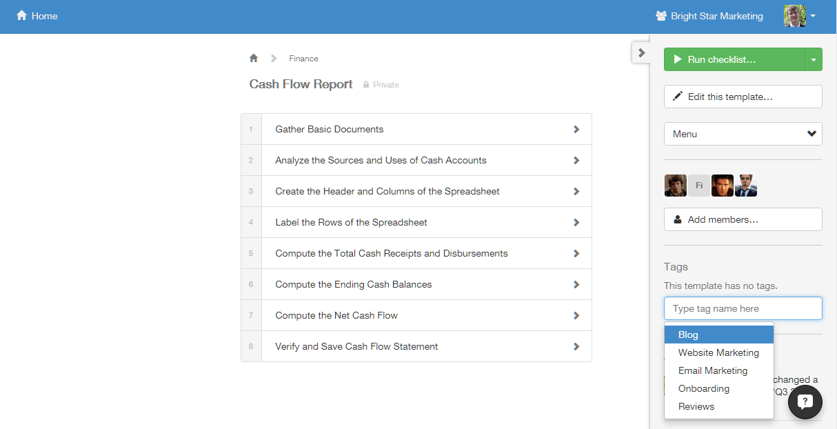 Members, by default, have access only to templates and checklists in the Home folder — the one you'll go to by clicking Home in the top right corner of your screen. Members must be given access to templates, folders and checklists on an individual basis with permissions that we'll explore further down the task. To add users to individual checklists or templates without giving them control over anything, you must assign them as guests.