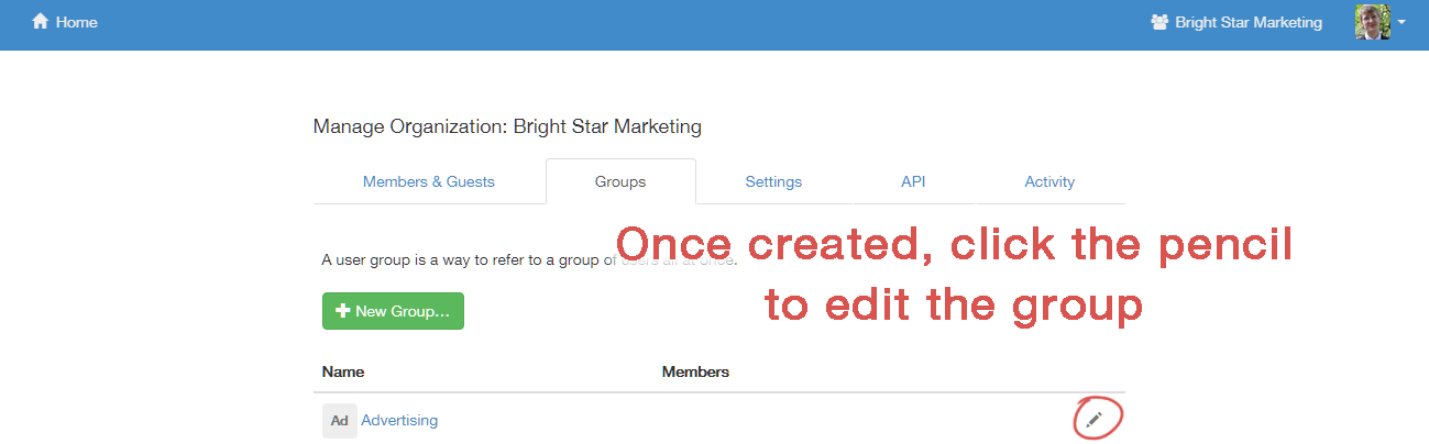 As an admin, you can edit permissions for users and groups by clicking the drop down menu: