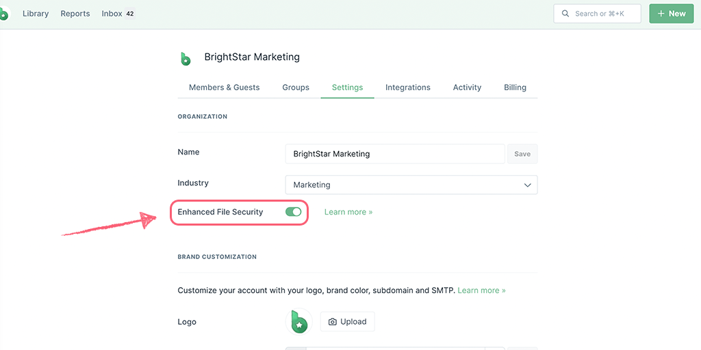 When you enable the Enhanced File Security feature, only users logged into a Process Street account can access the files in your workflow runs.