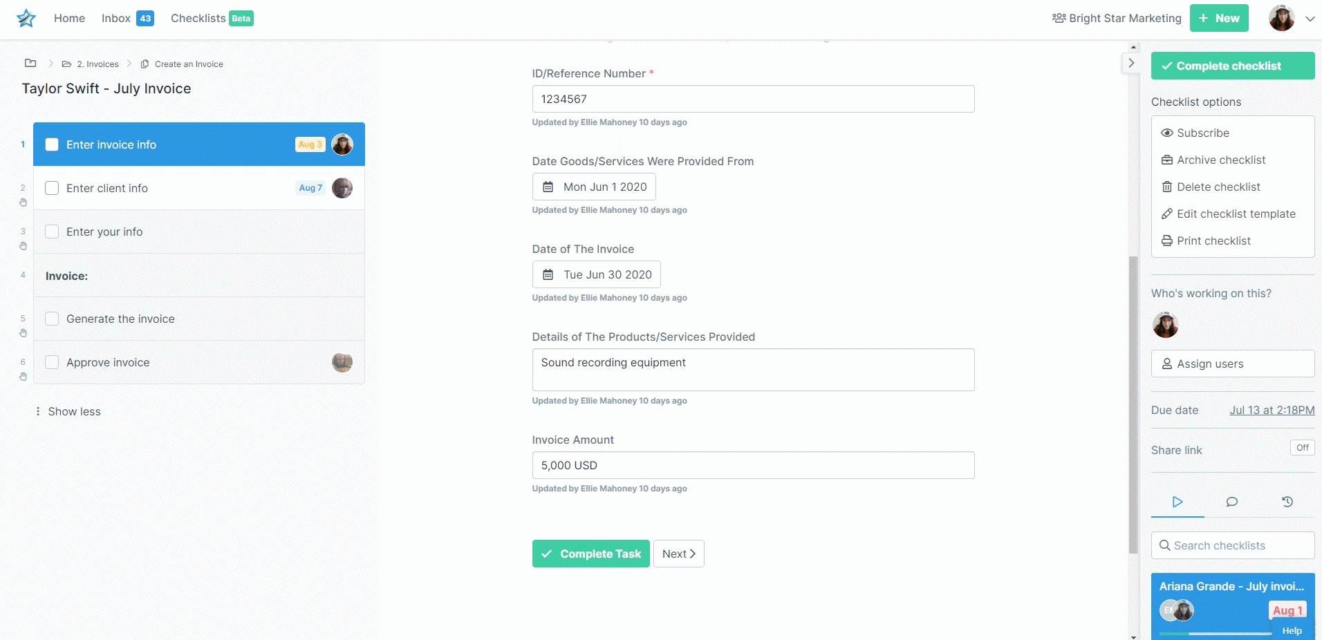 When you complete a task in a checklist, you will now be taken automatically to the next task you need to work on, without needing to hit the ‘next’ button.