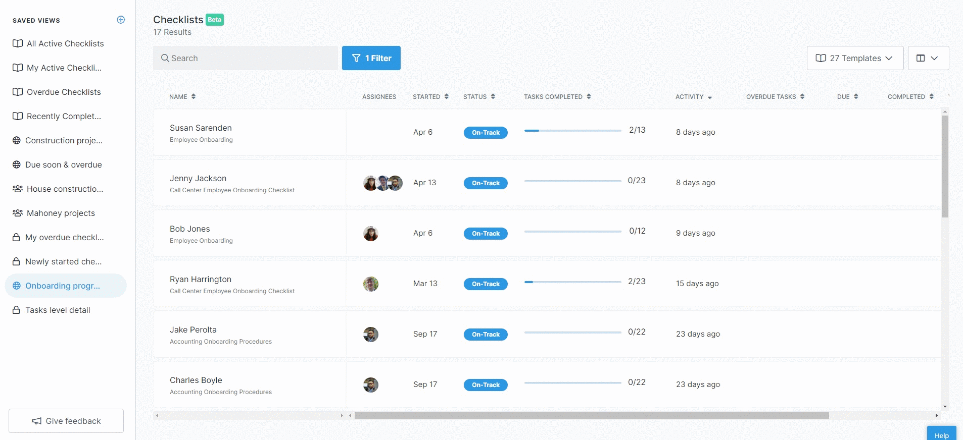 Head over to our help article to learn more about Checklist Dashboard features, and how to get it set up.