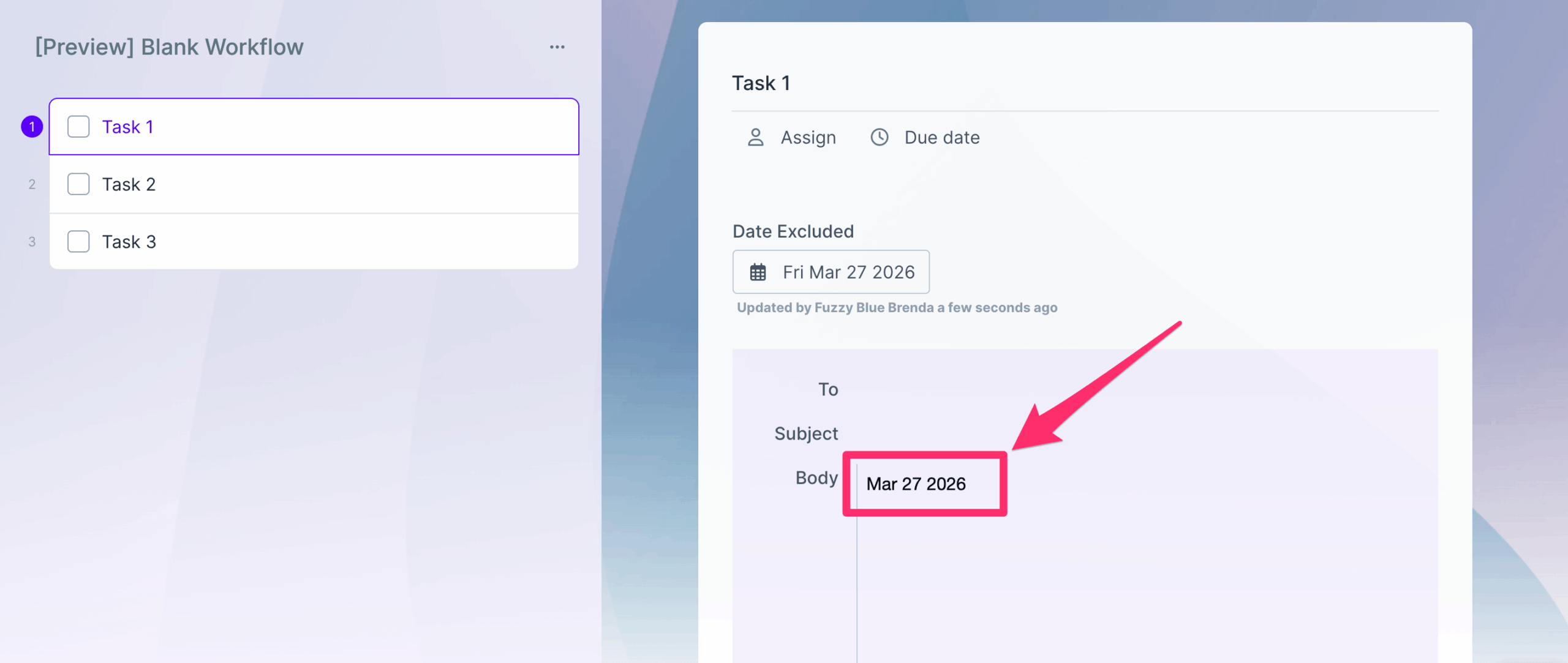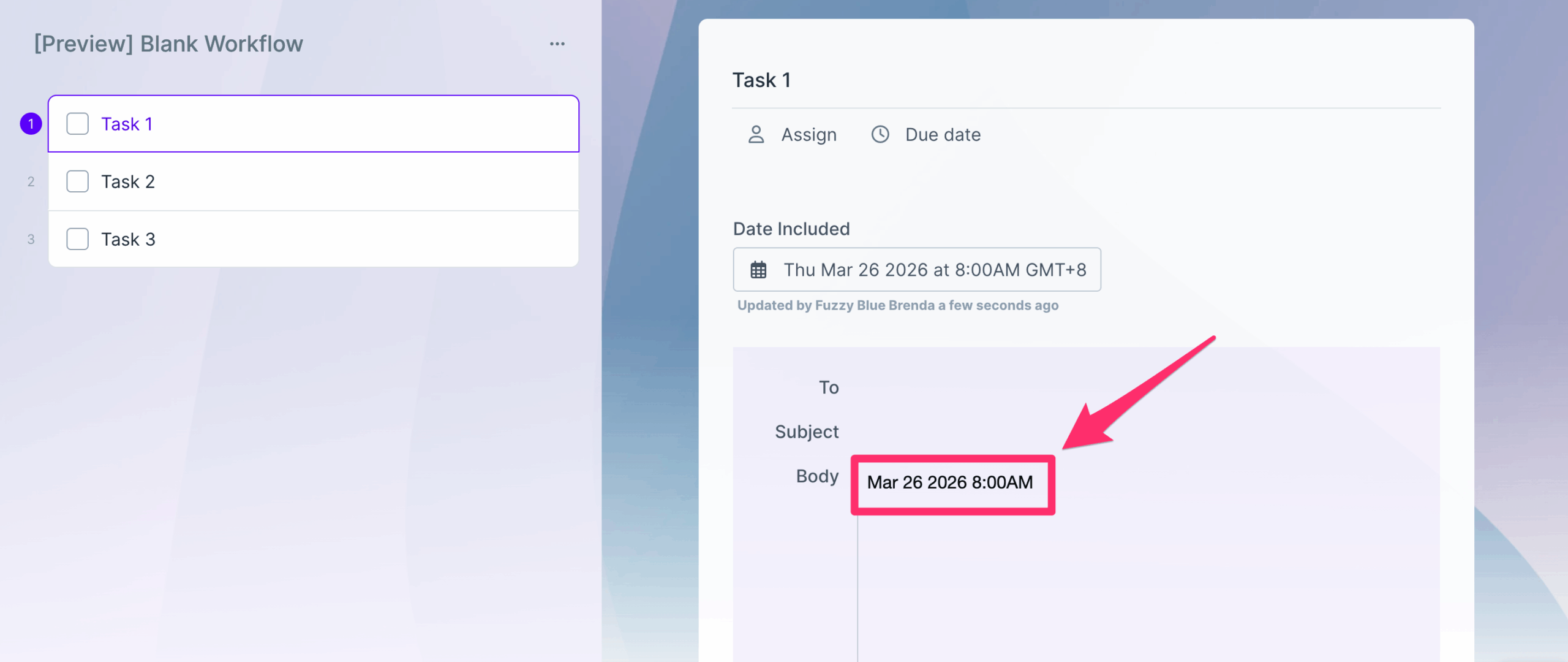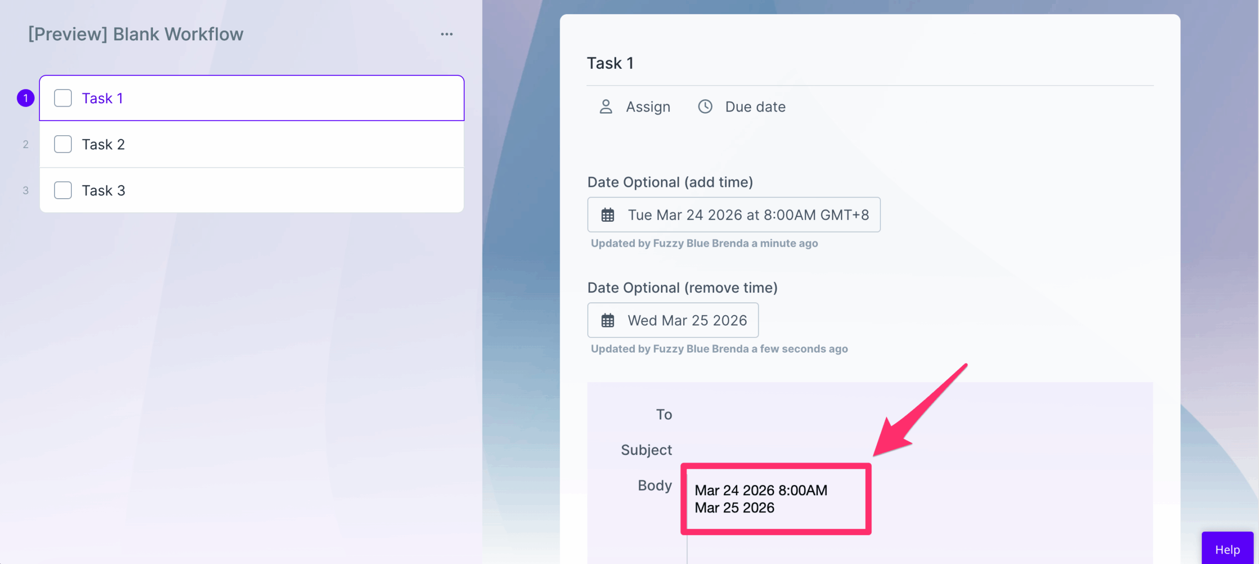 This form field can be used as a variable, in subtasks, workflow run links, in Automations and in Conditional Logic.