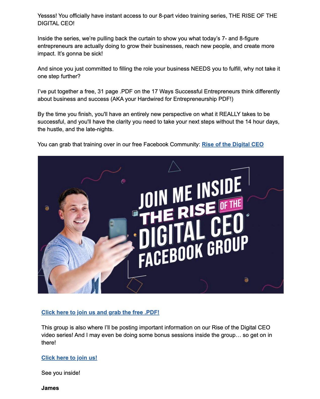 Having a place for those who watch your video to continue the conversation, has proved to be very beneficial for us. In fact, 75% of our Business By Design Members have been Members of our free online Facebook community during our launches. This is a space where you can follow-up on the call-to-action(s) in your videos, encourage their progress, connect with prospects, allow community to form between the Members, and most importantly build relationships.