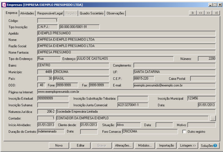 Nessa guia você deverá informar os dados cadastrais da empresa. Para isso, proceda da seguinte maneira: