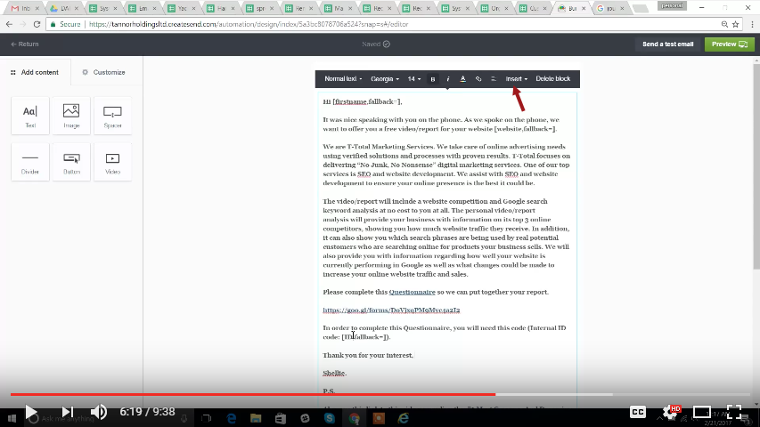 Check if the client is also added in the email to questionnaire sheets (3:26)