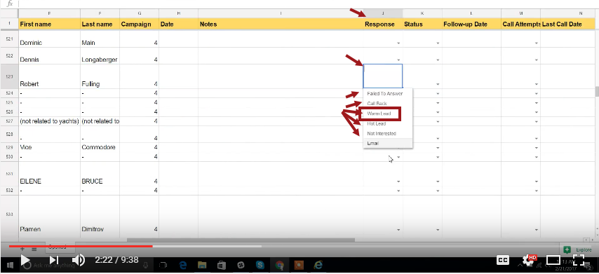 Updating the Campaign spreadsheet (2:08):