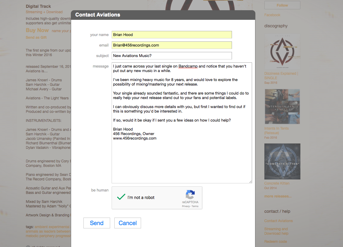 The other problem of the "best-selling" category is that the artist can be out of your league sometimes. Depending on your quality of work and your own personal social proof, some artists may be well above the need for someone on your level. This is where self-awareness comes in. DO reach out to those who are in genuine need of your services, however. DO NOT let fear of rejection hold you back if you think you can help.