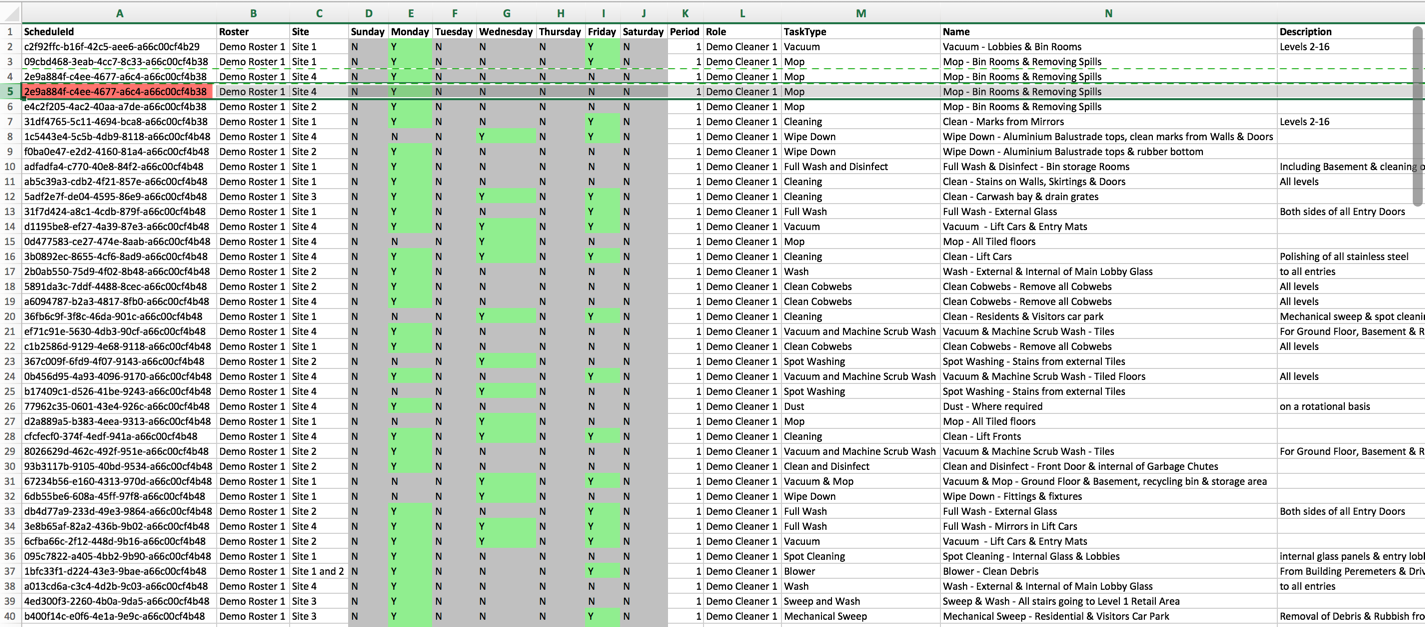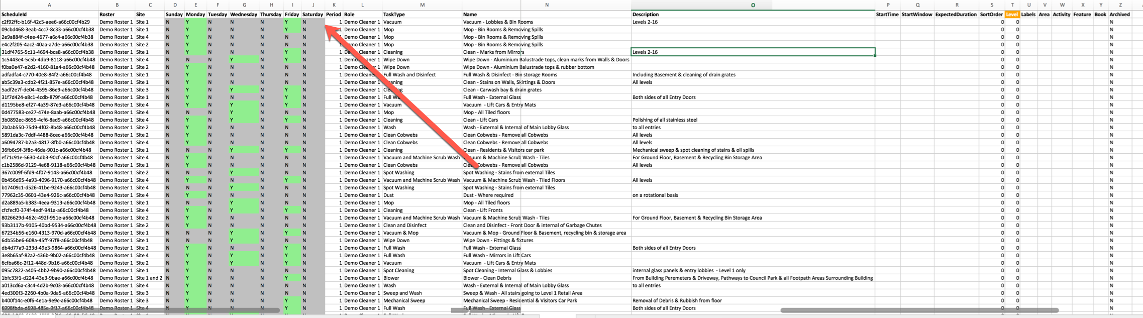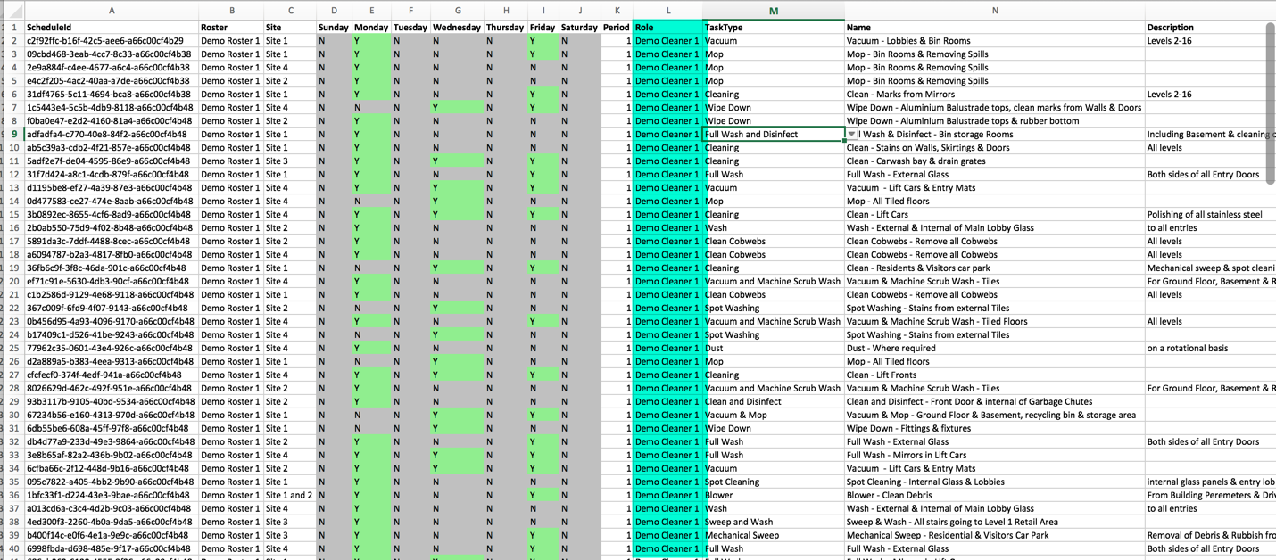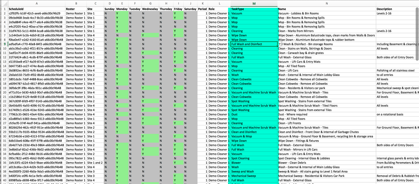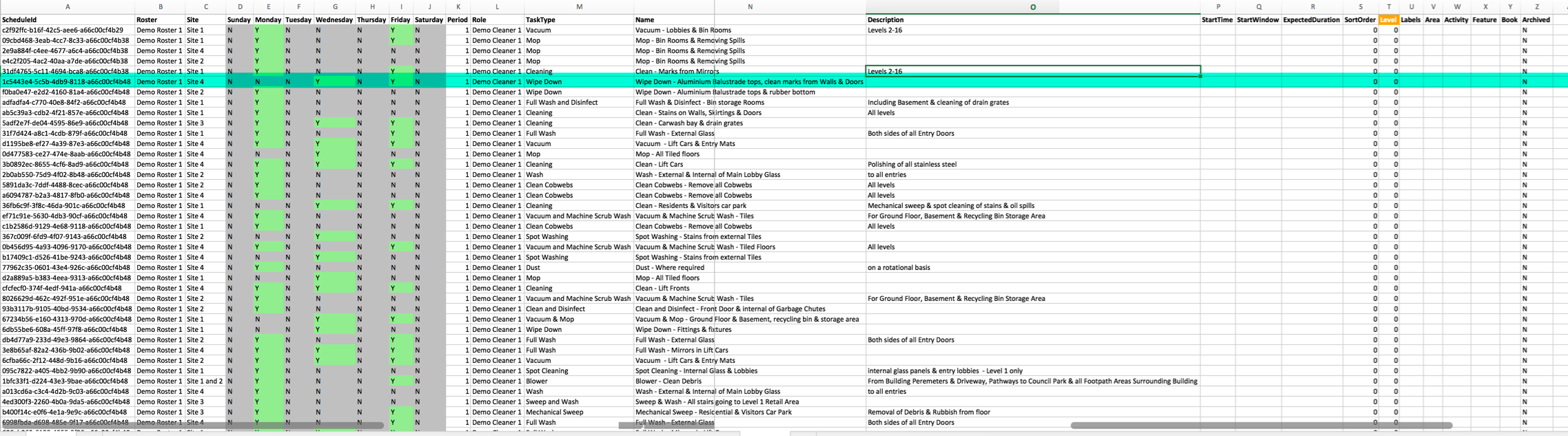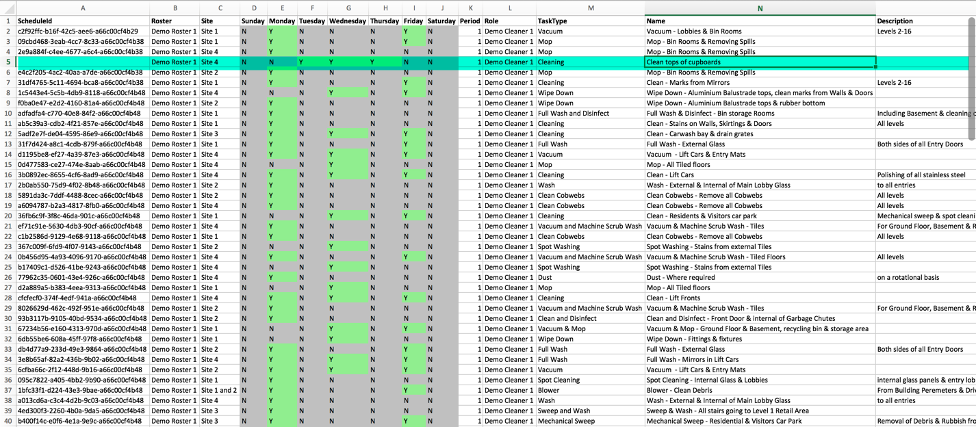Make any other changes to your new task. Note how the ScheduleID cell is blank, this tells the system that you want to make a new task, rather than edit an existing one