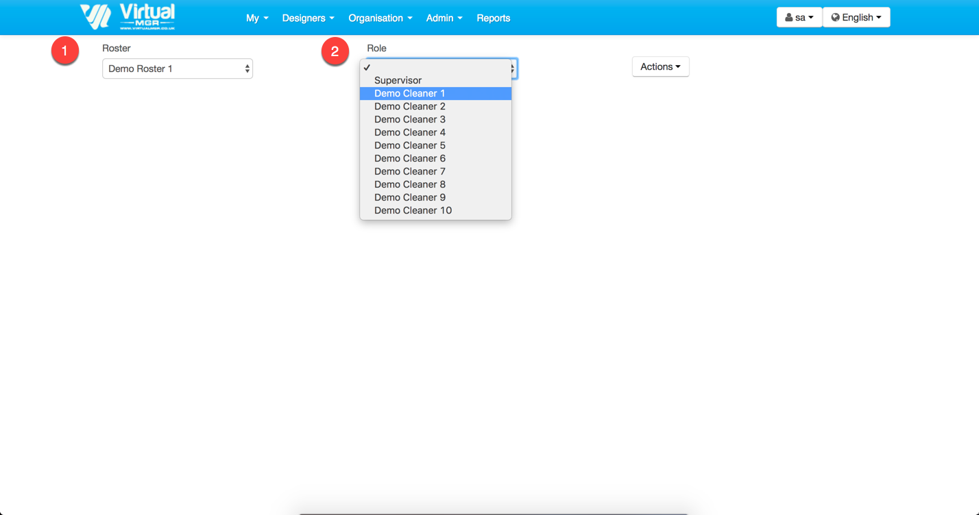 A Role is like a job description, for example "Cleaner 1" or "1st Floor Cleaner" or "East Coast Manager"
