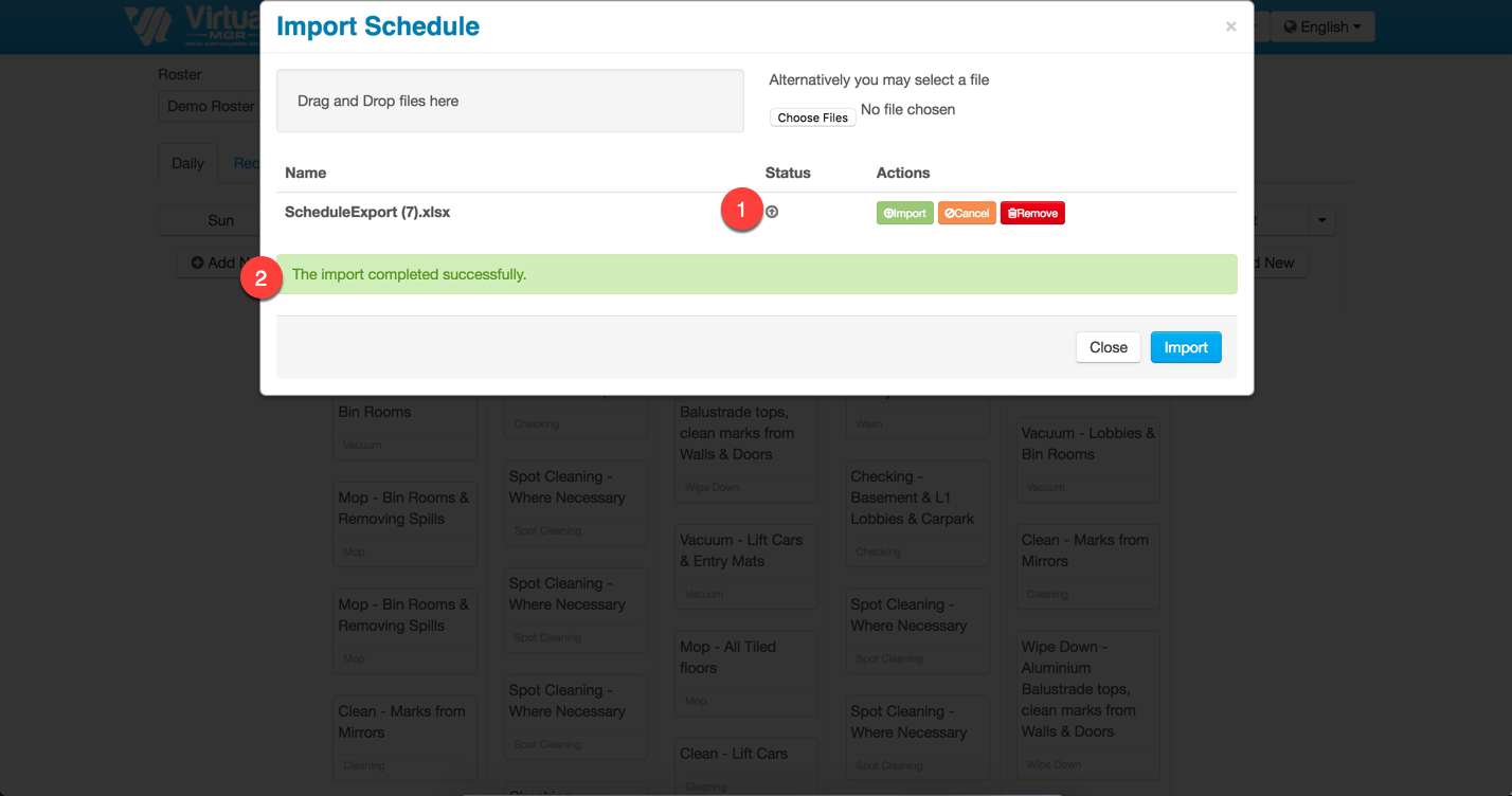 You'll know the file successfully uploaded by seeing the "Up Arrow" (#1) You'll know your import worked if you see the green ribbon saying "Success" (#2)