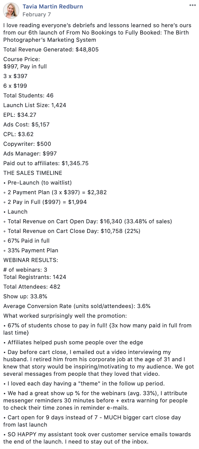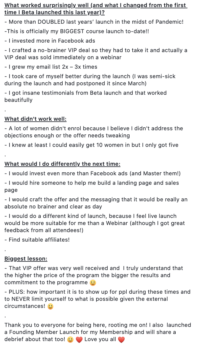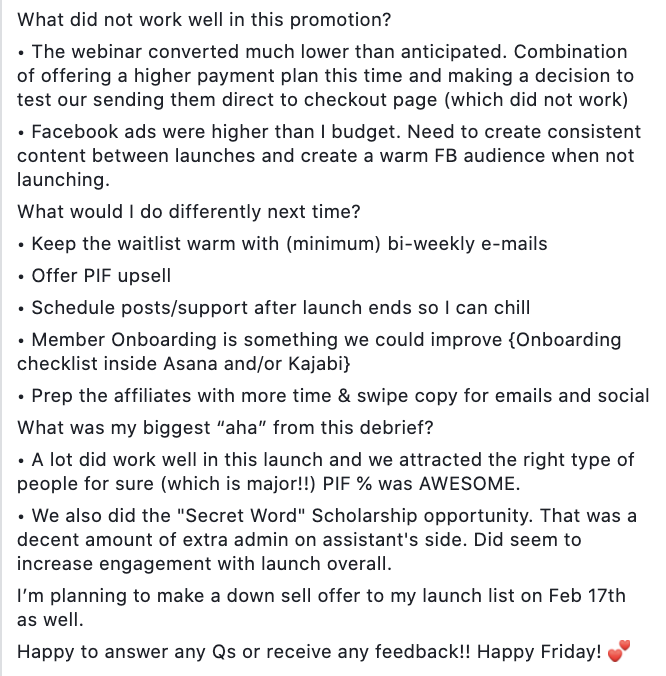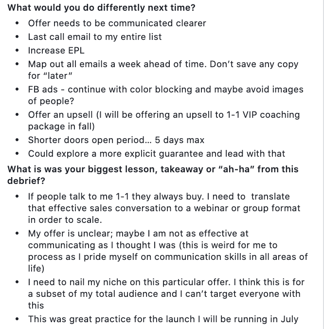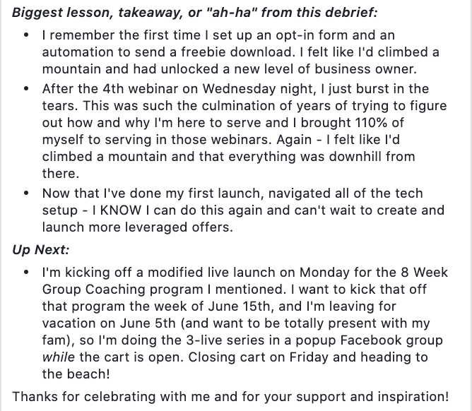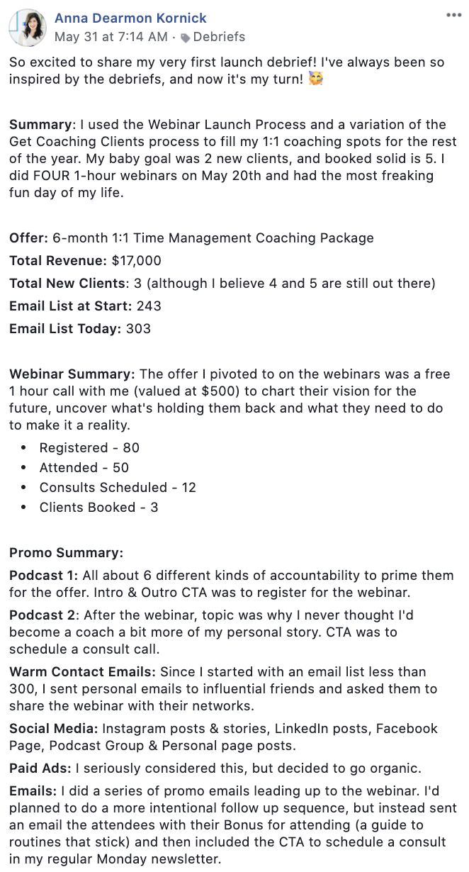 You can view Allie's debrief in our Members-only Facebook group here
