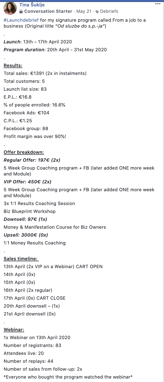 You can view Angela's debrief in our Members-only Facebook group here