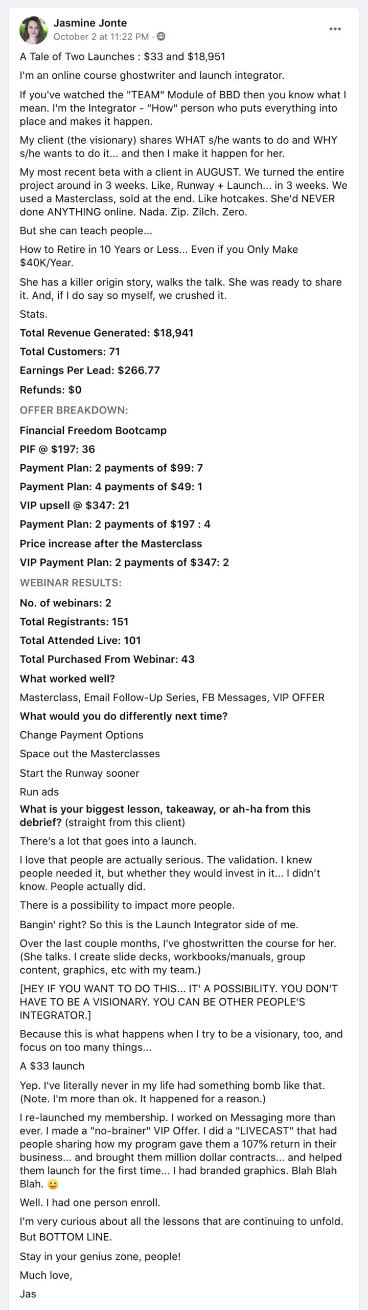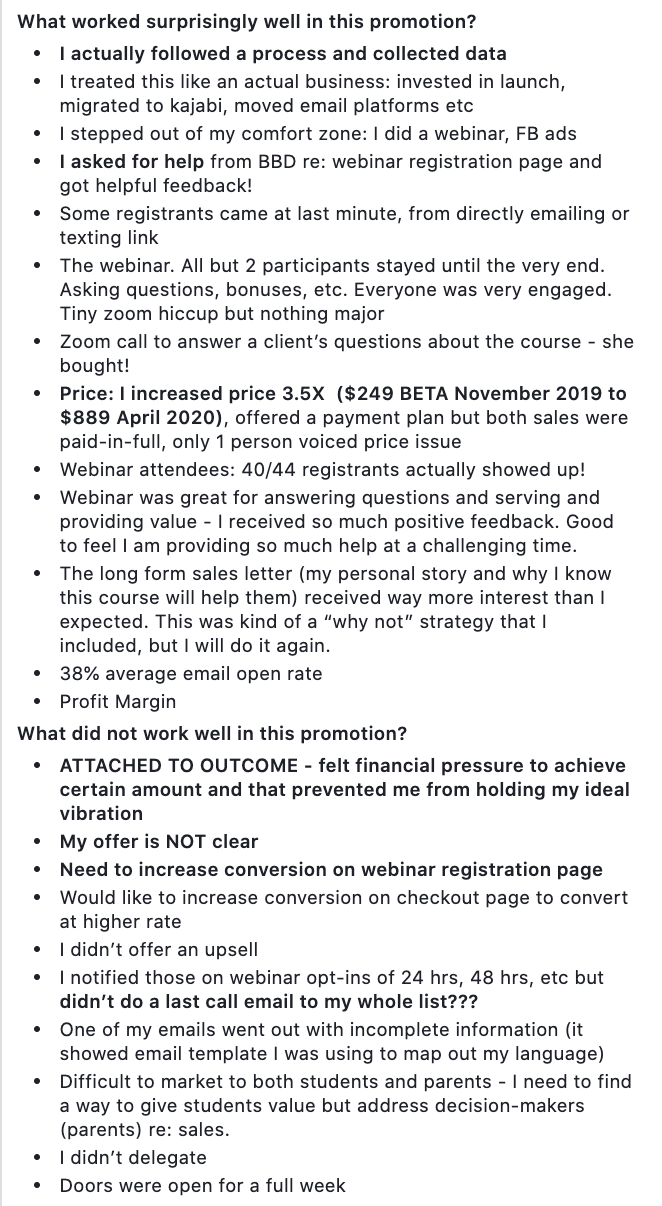 You can view Whitney's debrief in our Member's only Facebook group here