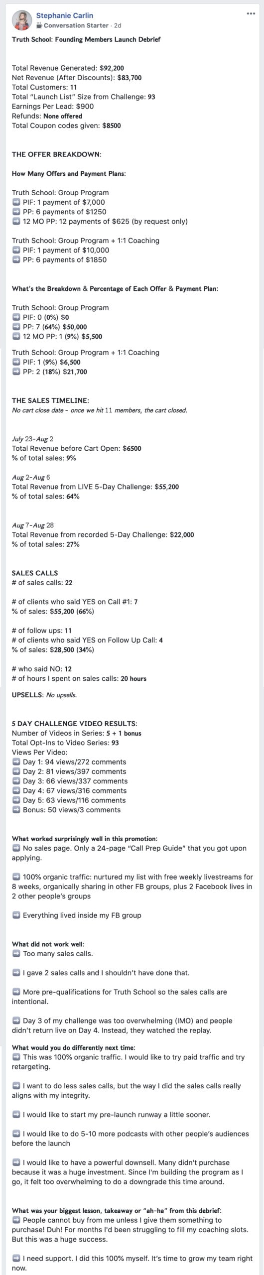 You can view Stephanie's debrief in our Member's only Facebook group here
