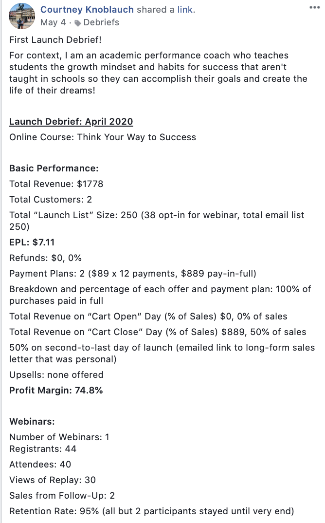 You can view Courtney's debrief in our Member's only Facebook group here