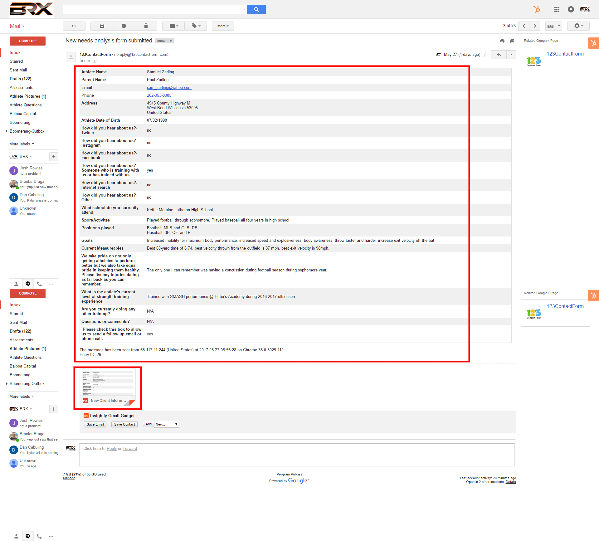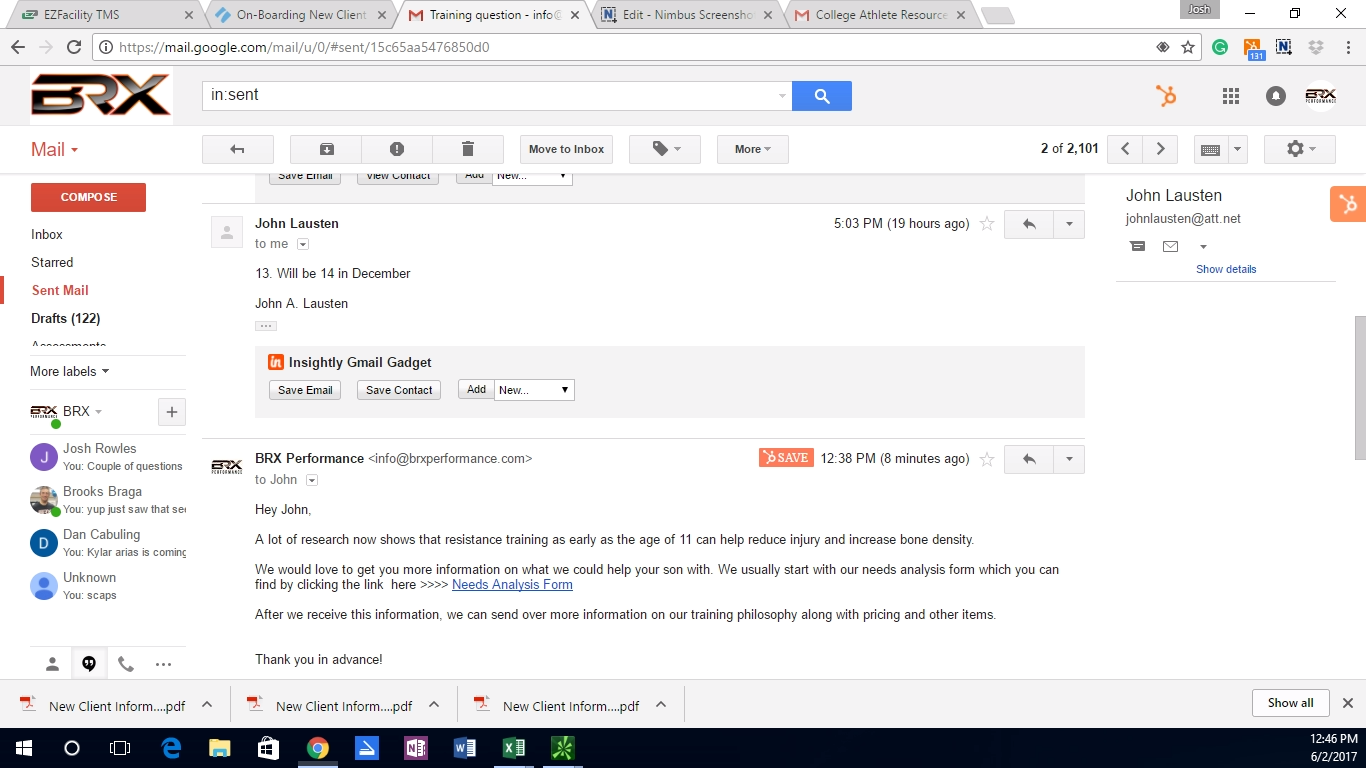 After identifying the age we then sent the needs analysis form this form can be found in the canned responses on Gmail see the picture below. Usually, we send the needs analysis right away but wanted to see how old he was first.