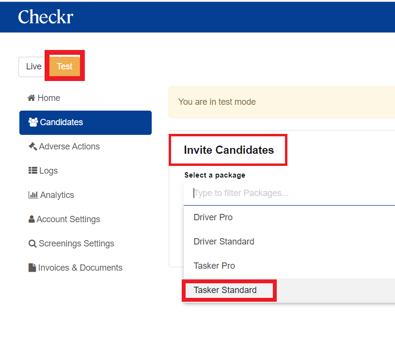 **If additional screenings need to be run repeat this process by choosing a direct option when choosing a "package".