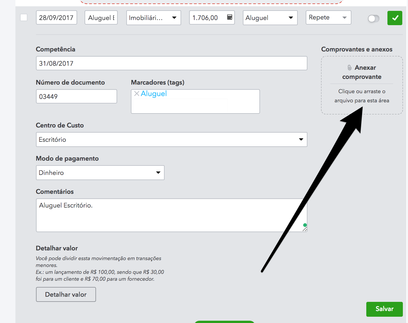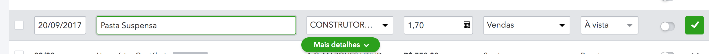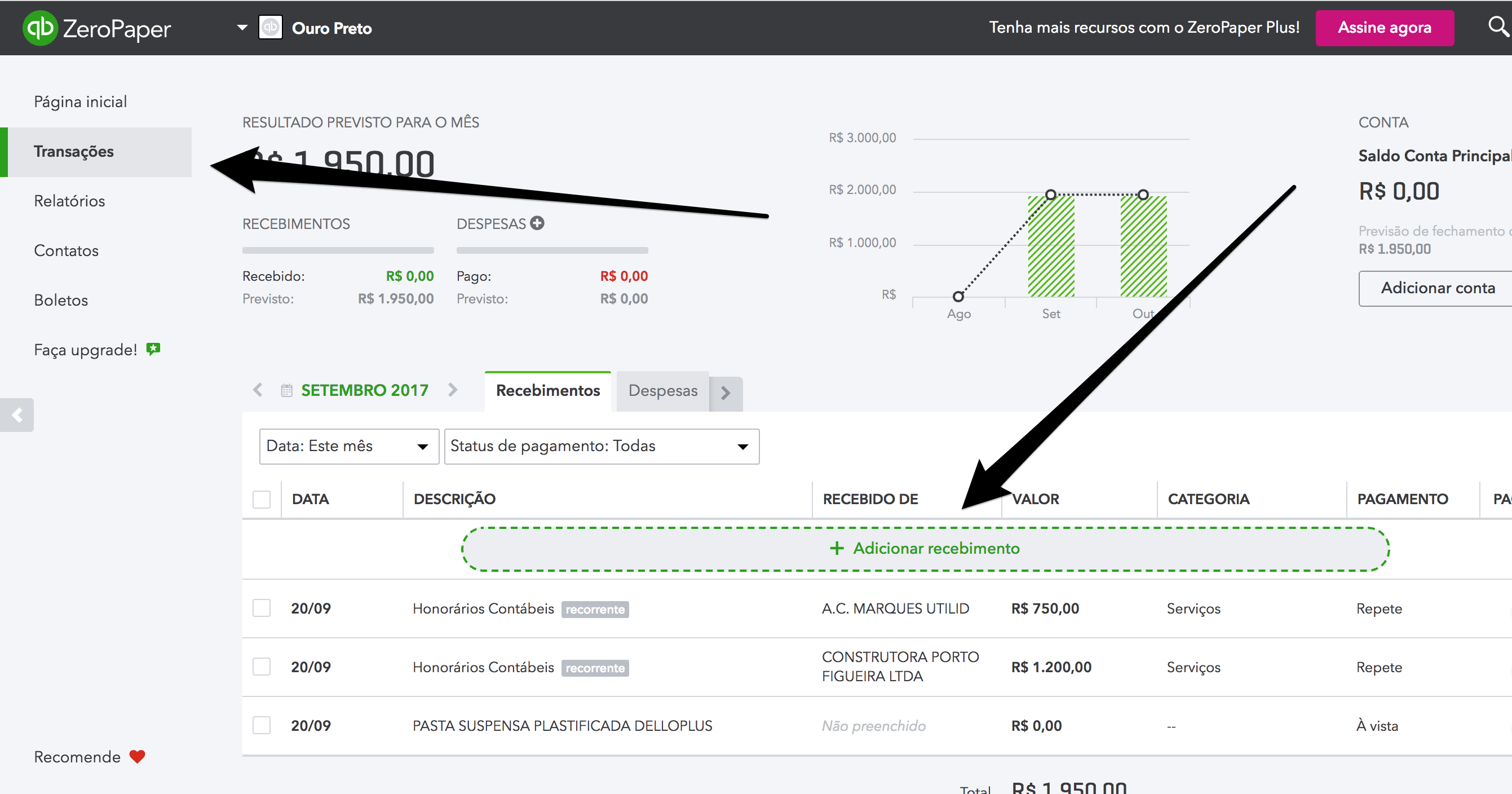 As transações que acontecem frequentemente, ou seja, que se repetem, chamamos de recorrentes. Por exemplo: assinaturas, internet, aluguel, condomínio. Elas podem ser recebimentos (pagamento de um inquilino por exemplo; pagamento de um serviço "fixo") ou despesas (como conta de luz, água etc).