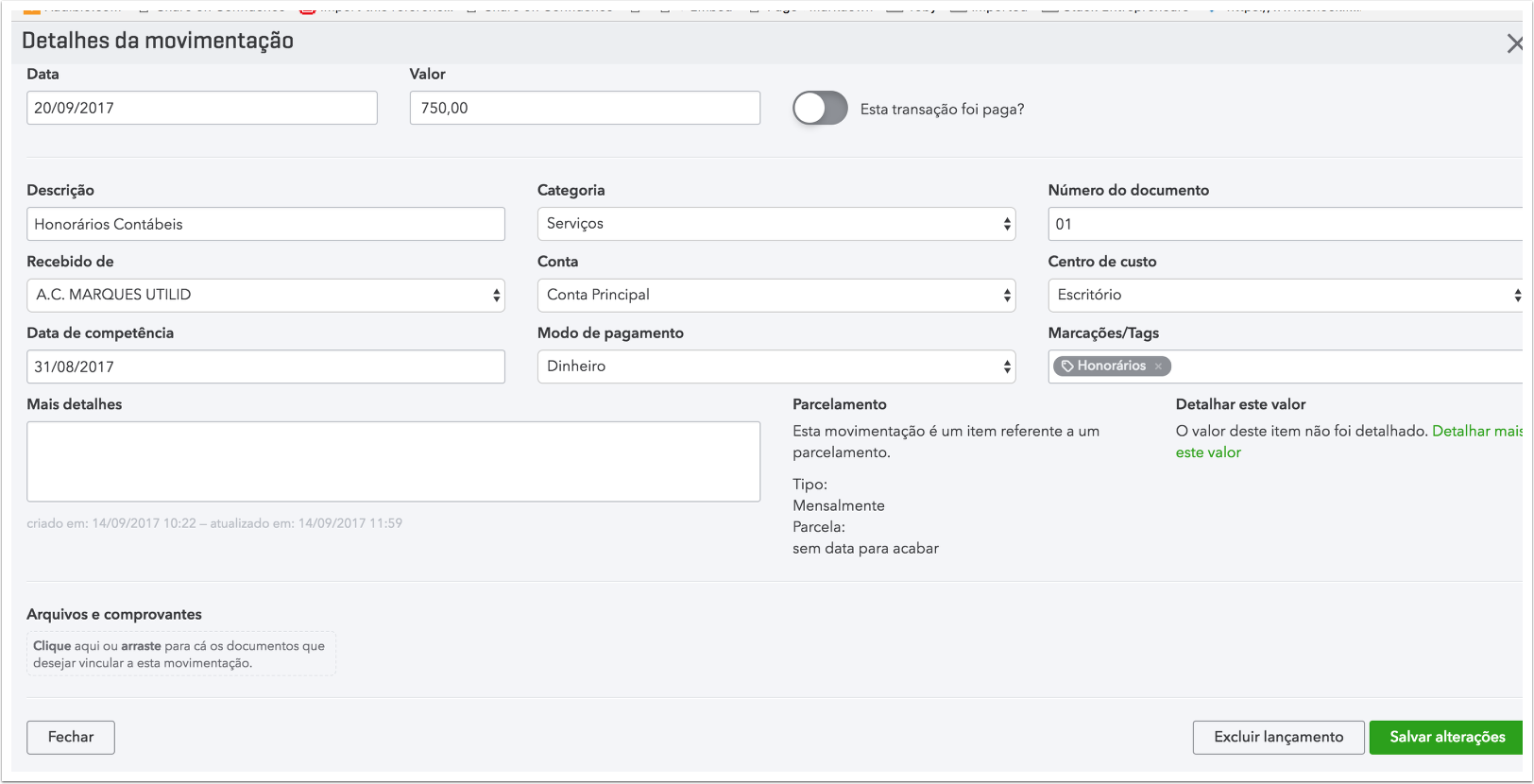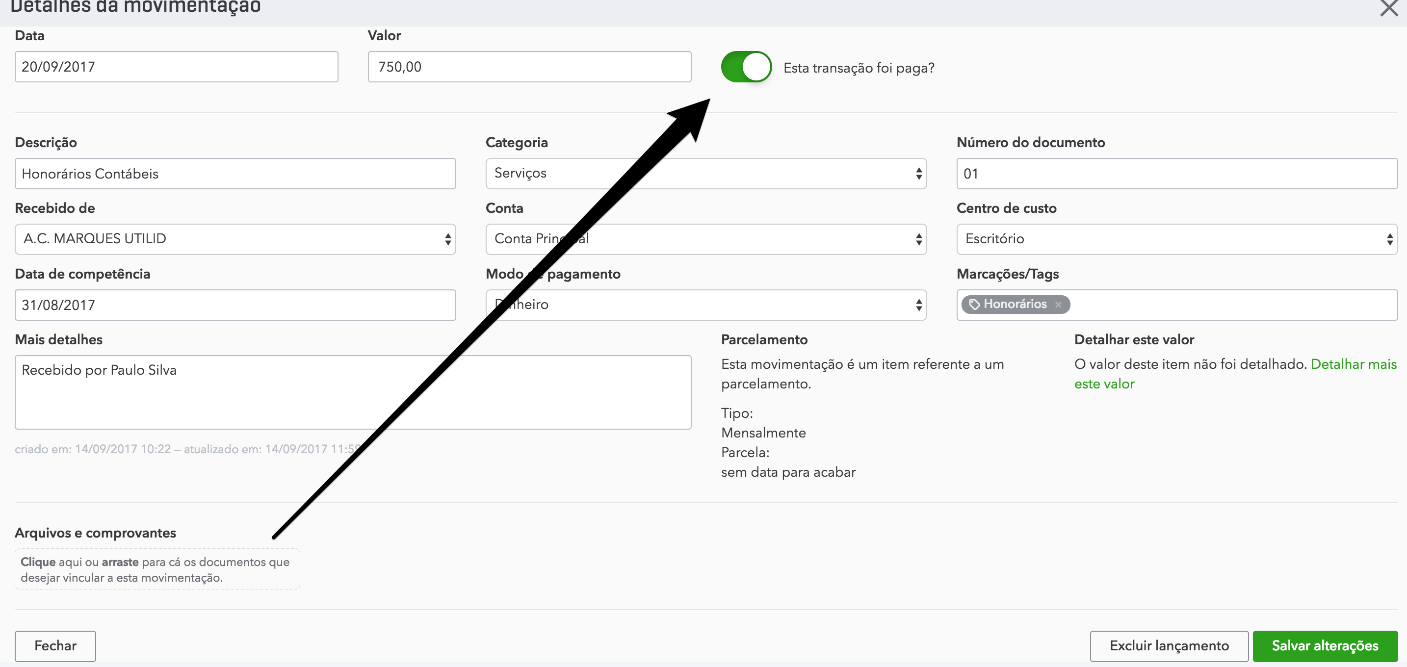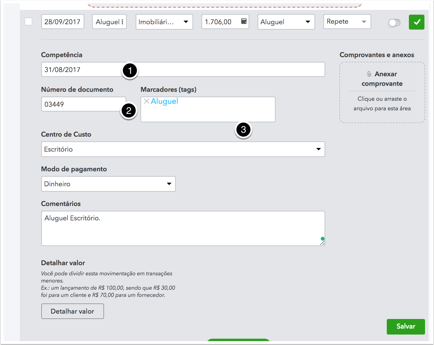 As transações que acontecem frequentemente, ou seja, que se repetem, chamamos de recorrentes. Por exemplo: assinaturas, internet, aluguel, condomínio. Elas podem ser recebimentos (pagamento de um inquilino por exemplo; pagamento de um serviço "fixo") ou despesas (como conta de luz, água etc).