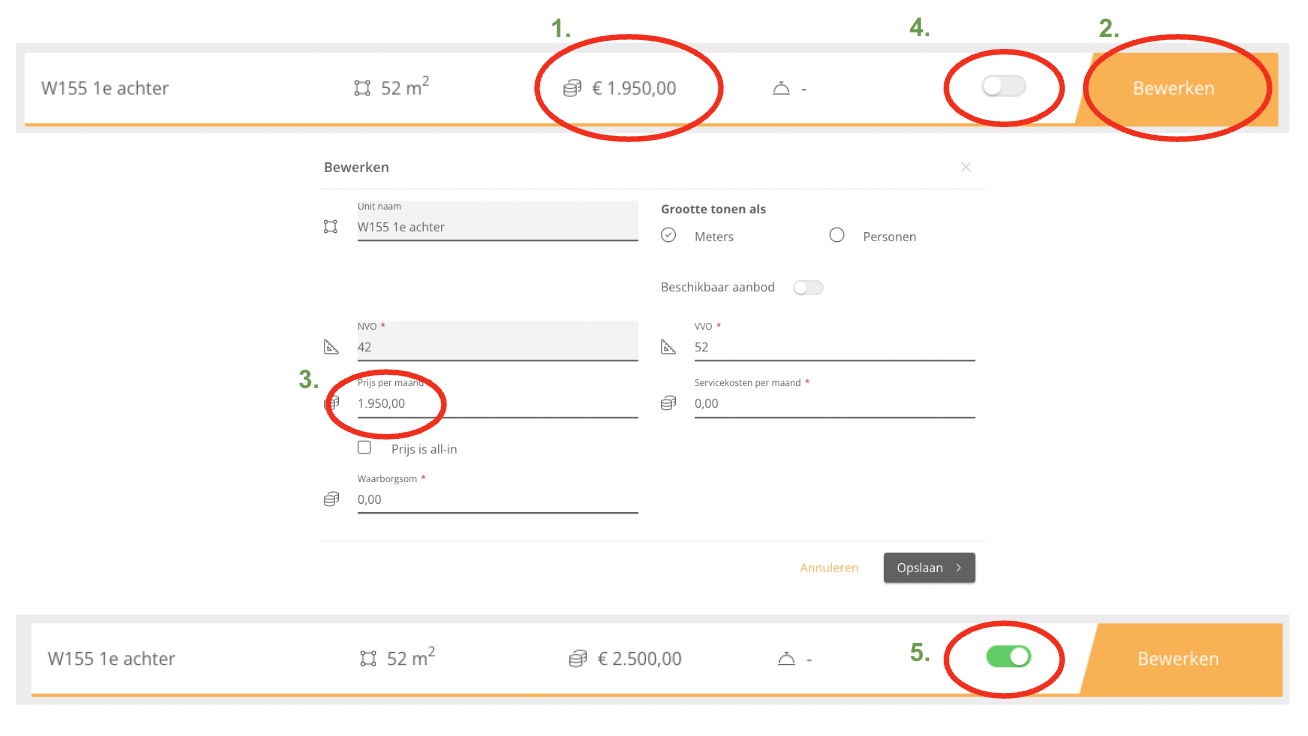 Bijv.: wacht op reactie van huurder; MO heeft op 17/8 gebeld