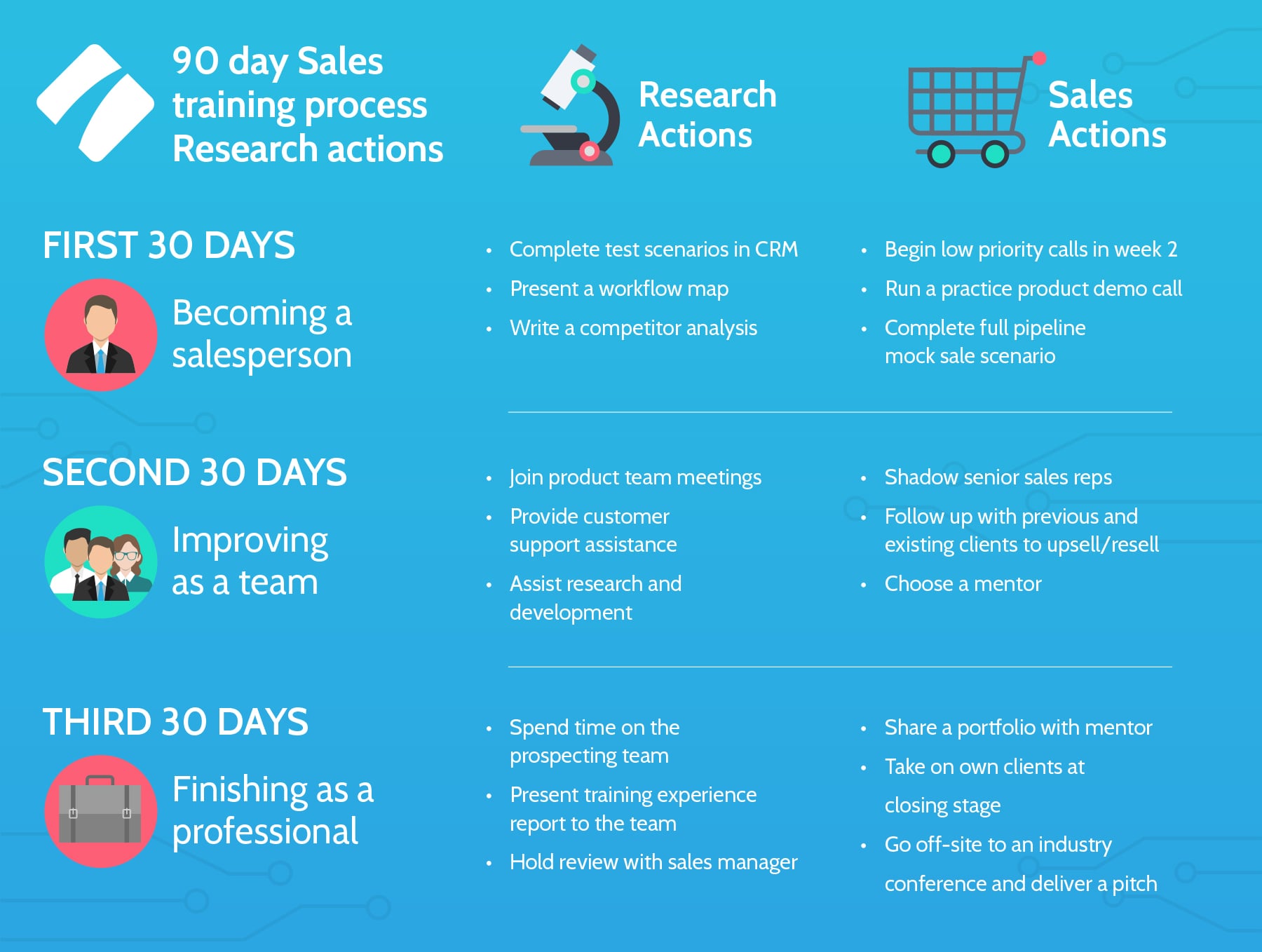 In this checklist, we have provided a 90-day training outline which takes your new hire from fresh-faced hire to experienced deal-closer.