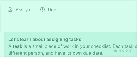 Within each task, you can add any number of items, actions, or form fields that will work towards completing it.