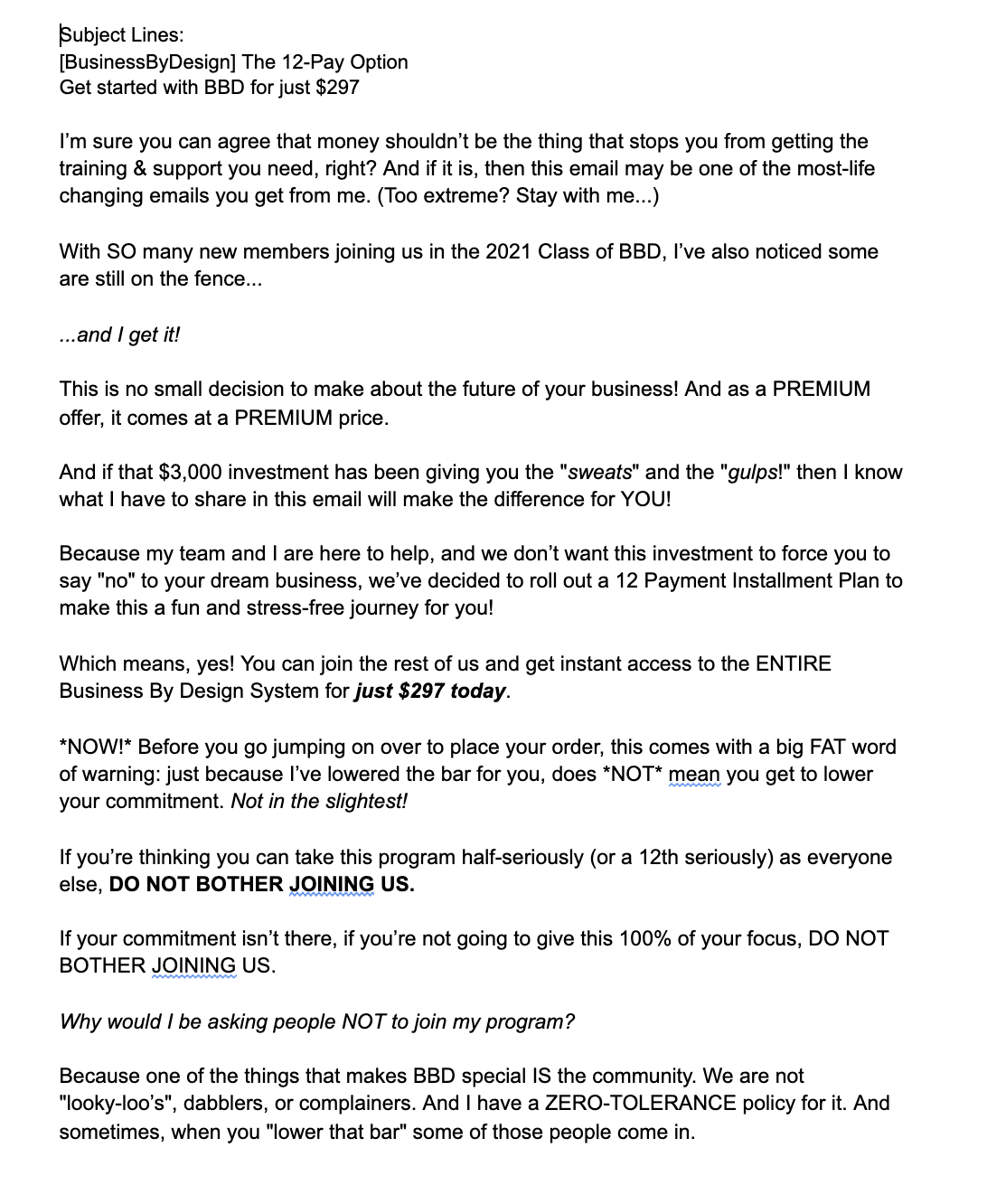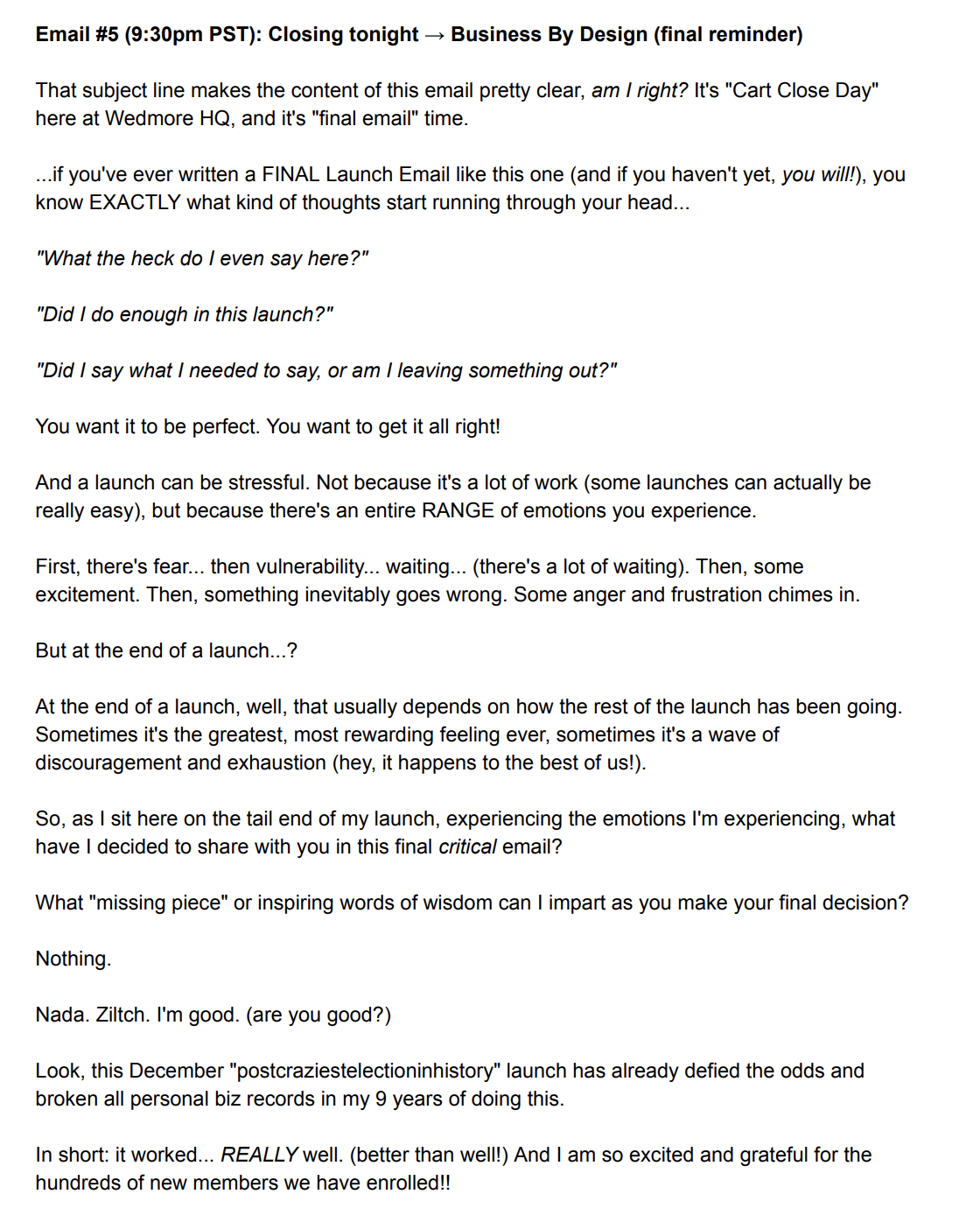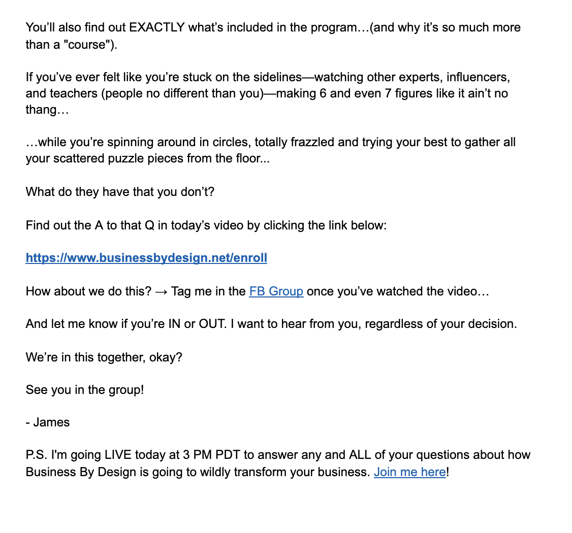 The "Open Enrollment" Period is the crucial time when your prospect make a decision to work with you... or reject you! This process is all about answering the question: "what the heck do I say and do during the Open Cart Period?!"