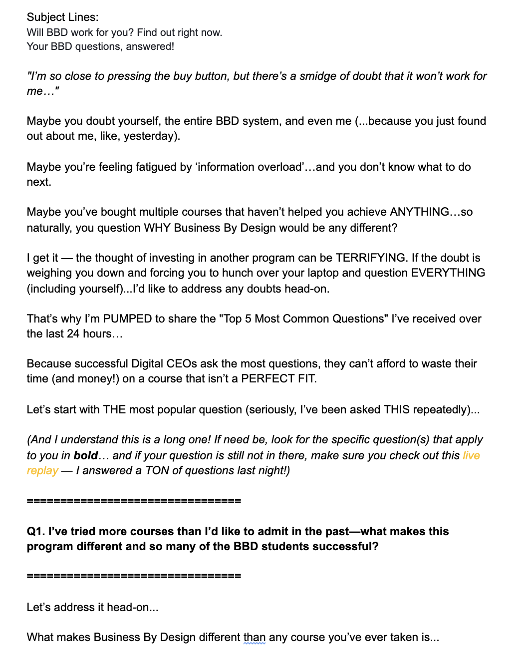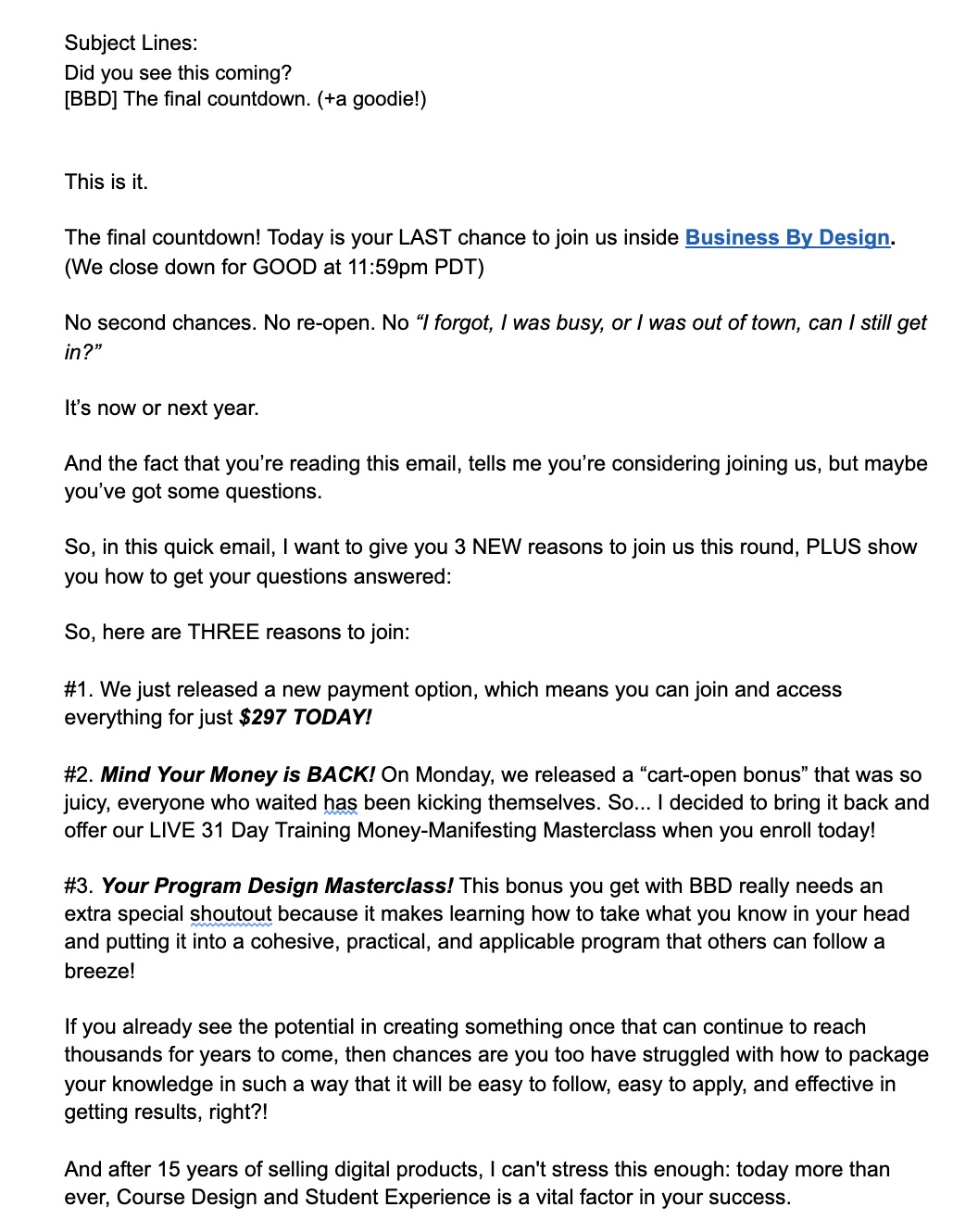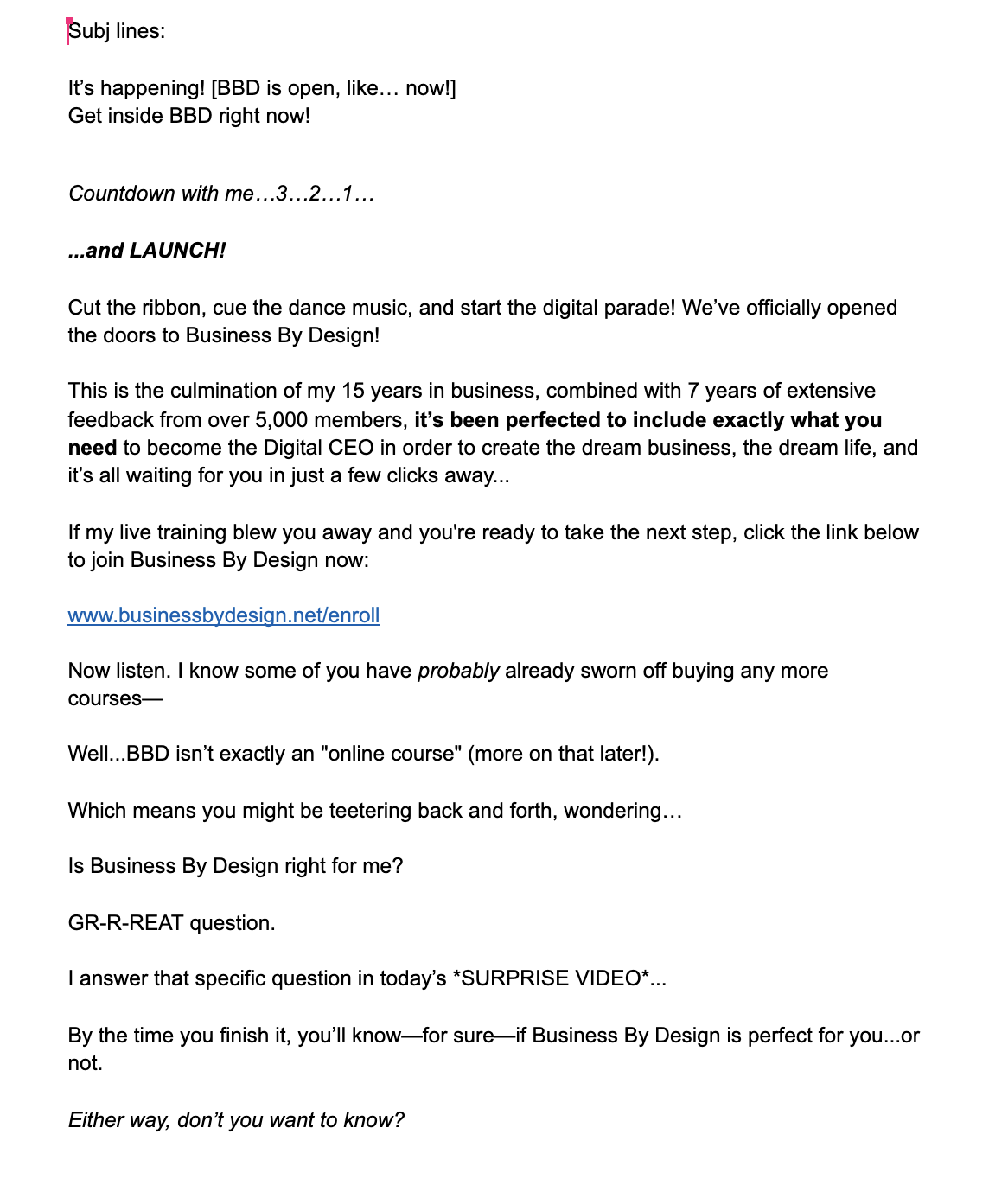 The "Open Enrollment" Period is the crucial time when your prospect make a decision to work with you... or reject you! This process is all about answering the question: "what the heck do I say and do during the Open Cart Period?!"